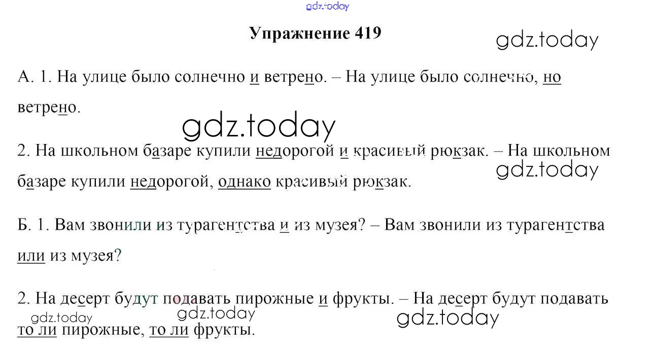 На страницах сайта gdz.today вы найдете учебный и вспомогательный материал, направленный на улучшения знаний школьной программы. ГДЗ - онлайн мир знаний Решение к упражнениям 419 Учебнику по Русскому языку для 7 класса Мурина, Волынец Национальный институт образования 2015