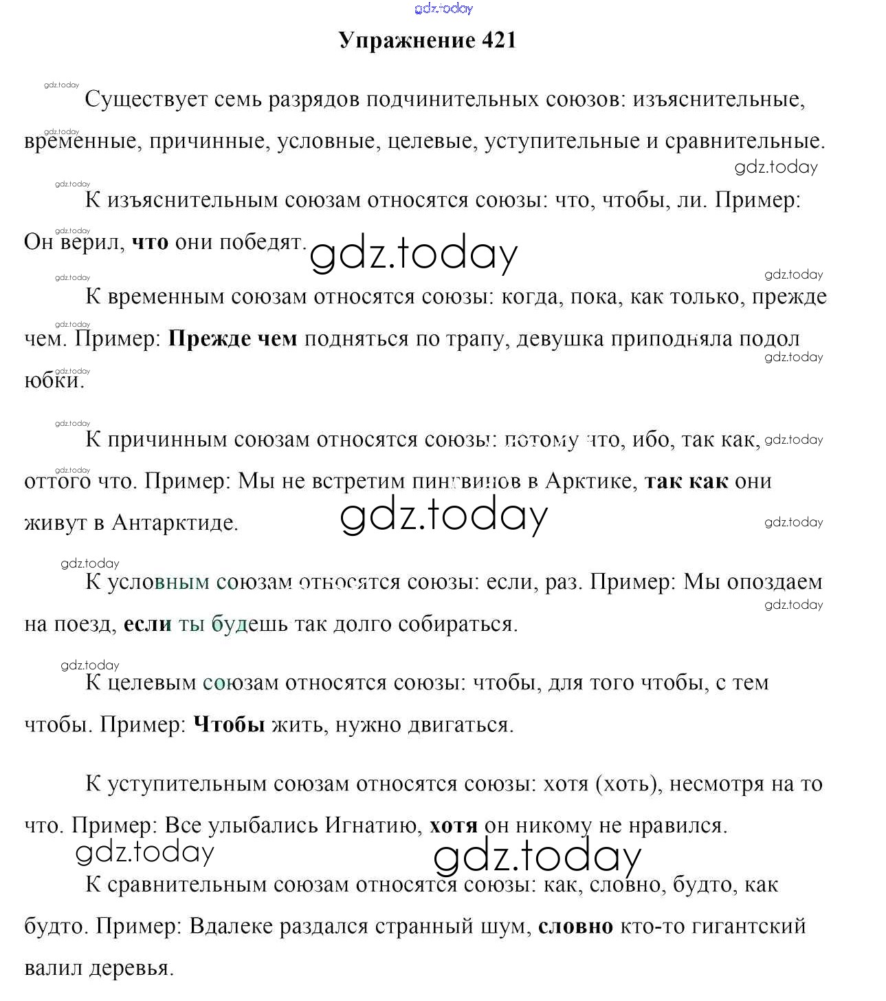 На страницах сайта gdz.today вы найдете учебный и вспомогательный материал, направленный на улучшения знаний школьной программы. ГДЗ - онлайн мир знаний Решение к упражнениям 421 Учебнику по Русскому языку для 7 класса Мурина, Волынец Национальный институт образования 2015