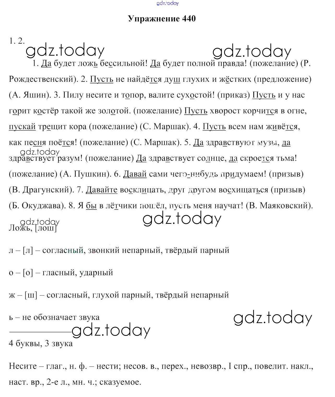 На страницах сайта gdz.today вы найдете учебный и вспомогательный материал, направленный на улучшения знаний школьной программы. ГДЗ - онлайн мир знаний Решение к упражнениям 440 Учебнику по Русскому языку для 7 класса Мурина, Волынец Национальный институт образования 2015