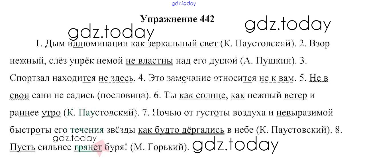 На страницах сайта gdz.today вы найдете учебный и вспомогательный материал, направленный на улучшения знаний школьной программы. ГДЗ - онлайн мир знаний Решение к упражнениям 442 Учебнику по Русскому языку для 7 класса Мурина, Волынец Национальный институт образования 2015