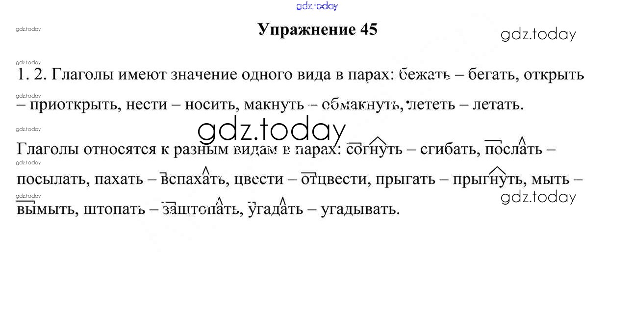 На страницах сайта gdz.today вы найдете учебный и вспомогательный материал, направленный на улучшения знаний школьной программы. ГДЗ - онлайн мир знаний Решение к упражнениям 45 Учебнику по Русскому языку для 7 класса Мурина, Волынец Национальный институт образования 2015