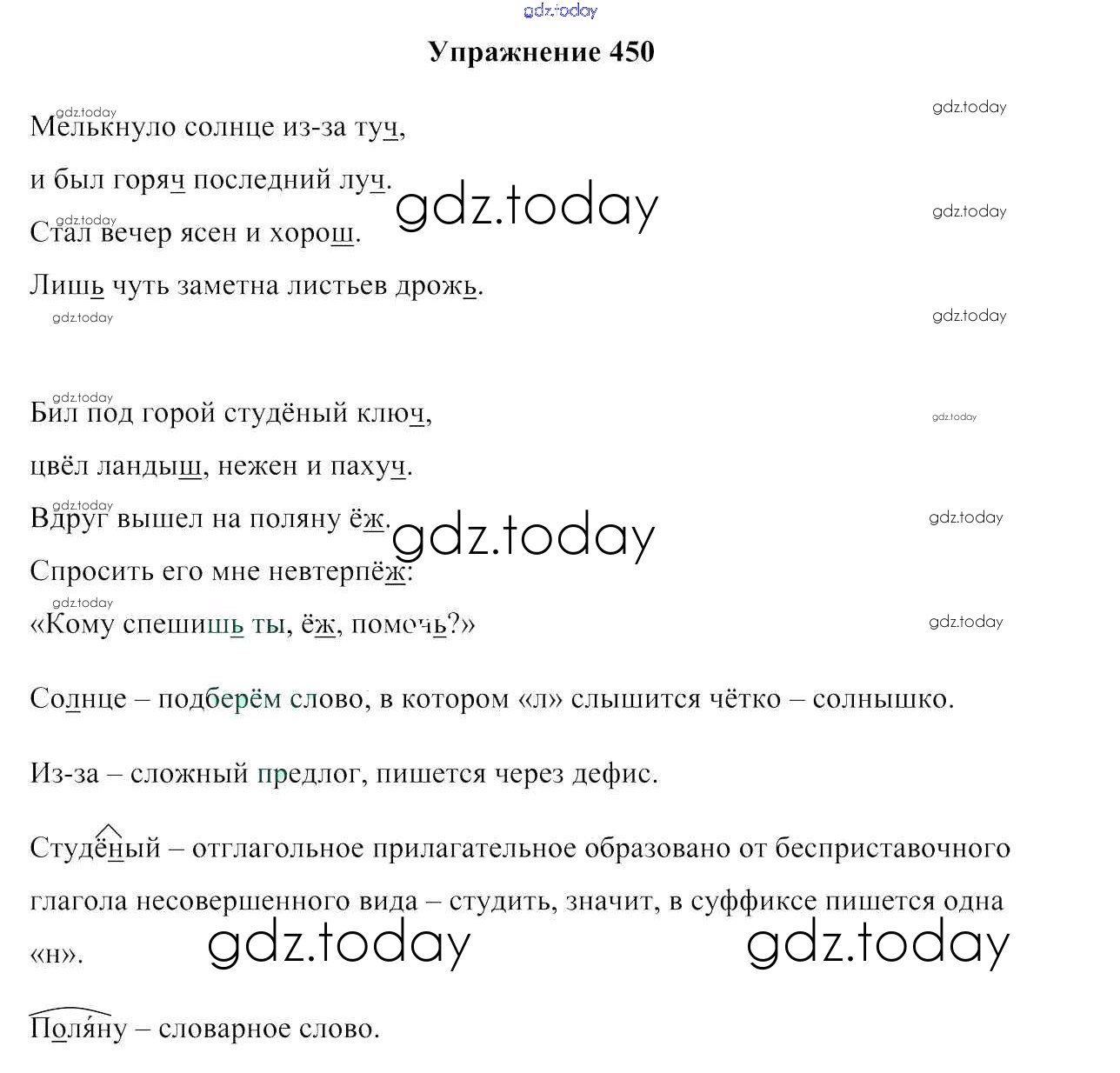 На страницах сайта gdz.today вы найдете учебный и вспомогательный материал, направленный на улучшения знаний школьной программы. ГДЗ - онлайн мир знаний Решение к упражнениям 450 Учебнику по Русскому языку для 7 класса Мурина, Волынец Национальный институт образования 2015