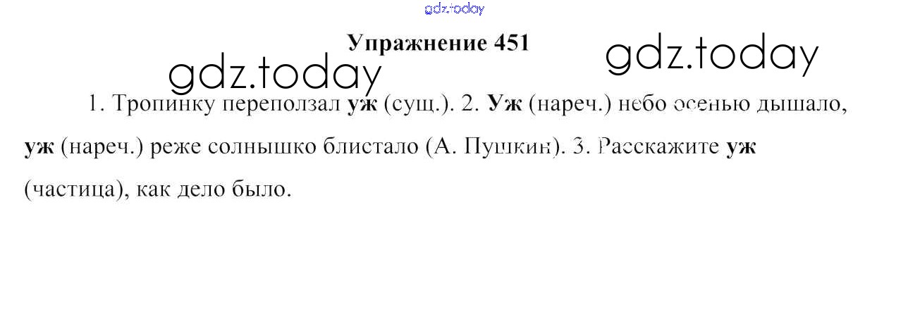 На страницах сайта gdz.today вы найдете учебный и вспомогательный материал, направленный на улучшения знаний школьной программы. ГДЗ - онлайн мир знаний Решение к упражнениям 451 Учебнику по Русскому языку для 7 класса Мурина, Волынец Национальный институт образования 2015