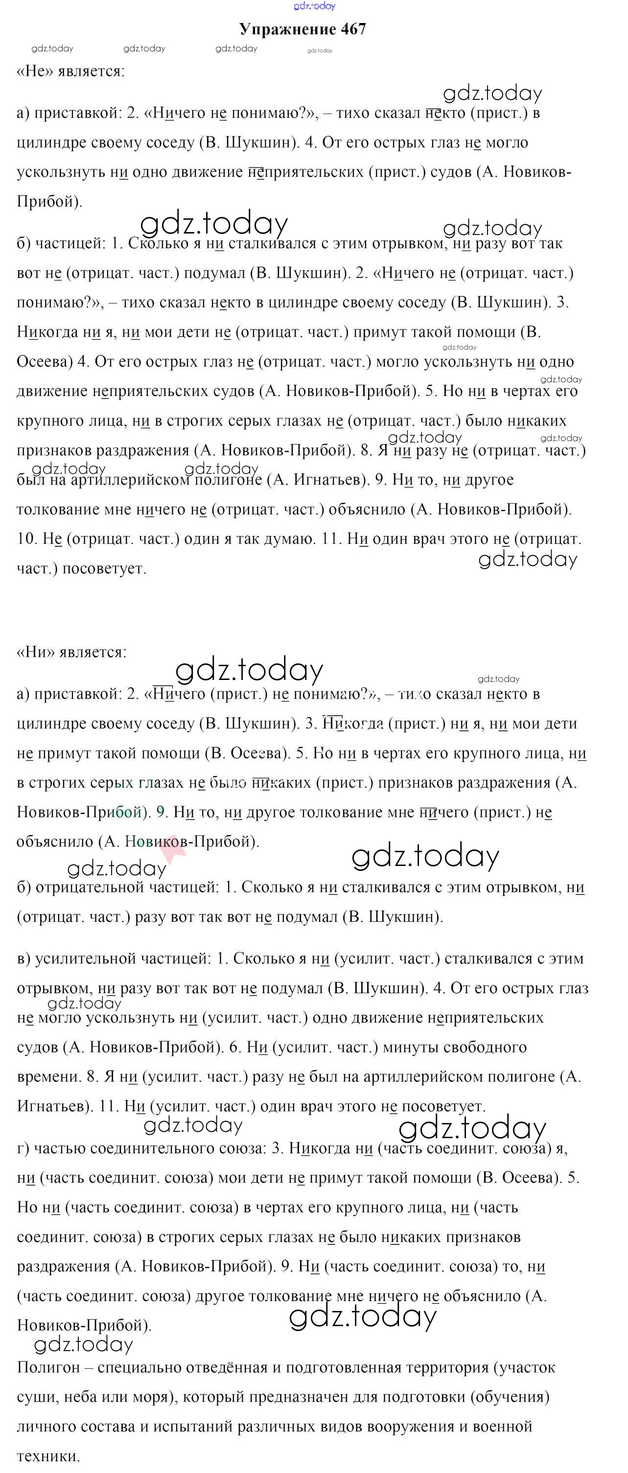 На страницах сайта gdz.today вы найдете учебный и вспомогательный материал, направленный на улучшения знаний школьной программы. ГДЗ - онлайн мир знаний Решение к упражнениям 467 Учебнику по Русскому языку для 7 класса Мурина, Волынец Национальный институт образования 2015