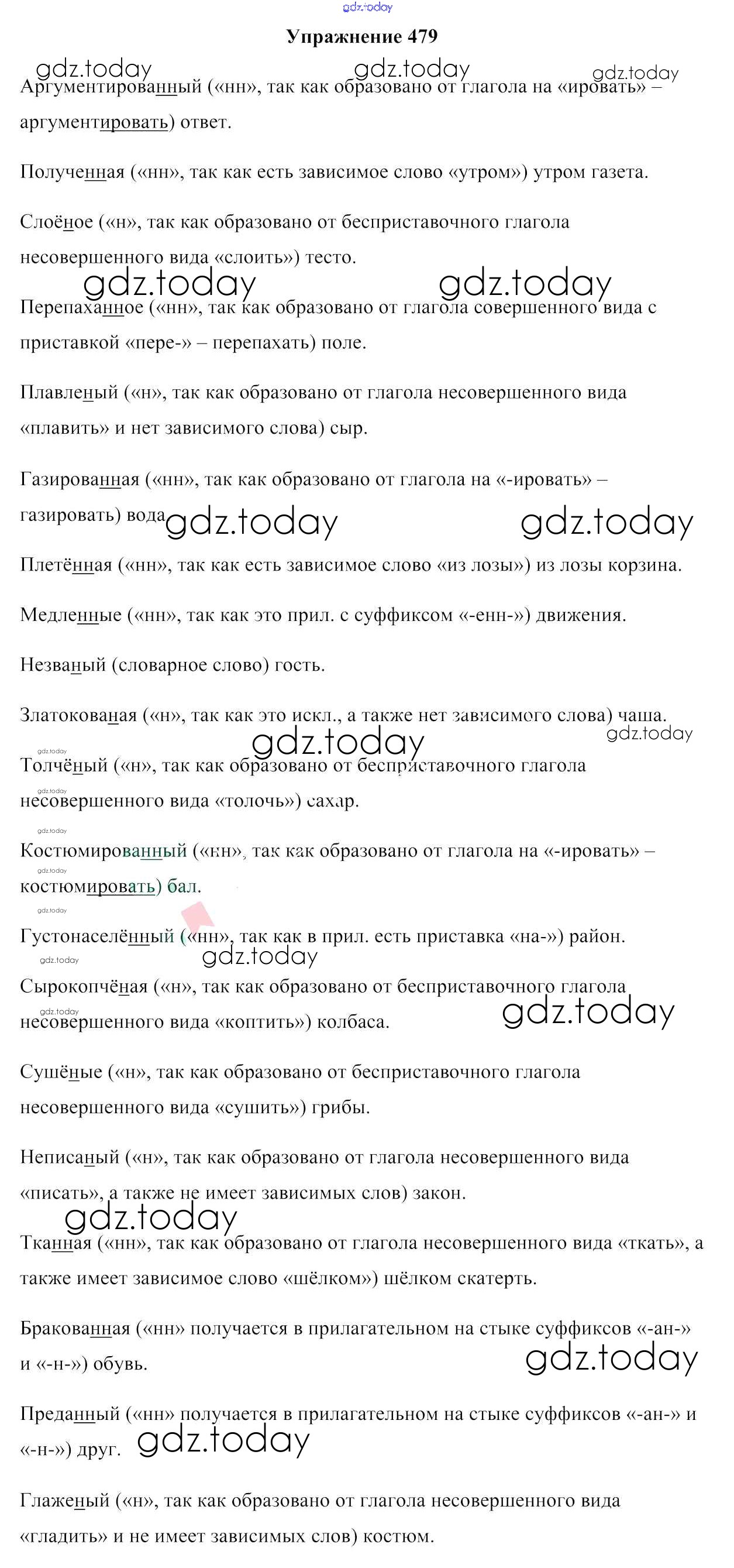 На страницах сайта gdz.today вы найдете учебный и вспомогательный материал, направленный на улучшения знаний школьной программы. ГДЗ - онлайн мир знаний Решение к упражнениям 479 Учебнику по Русскому языку для 7 класса Мурина, Волынец Национальный институт образования 2015