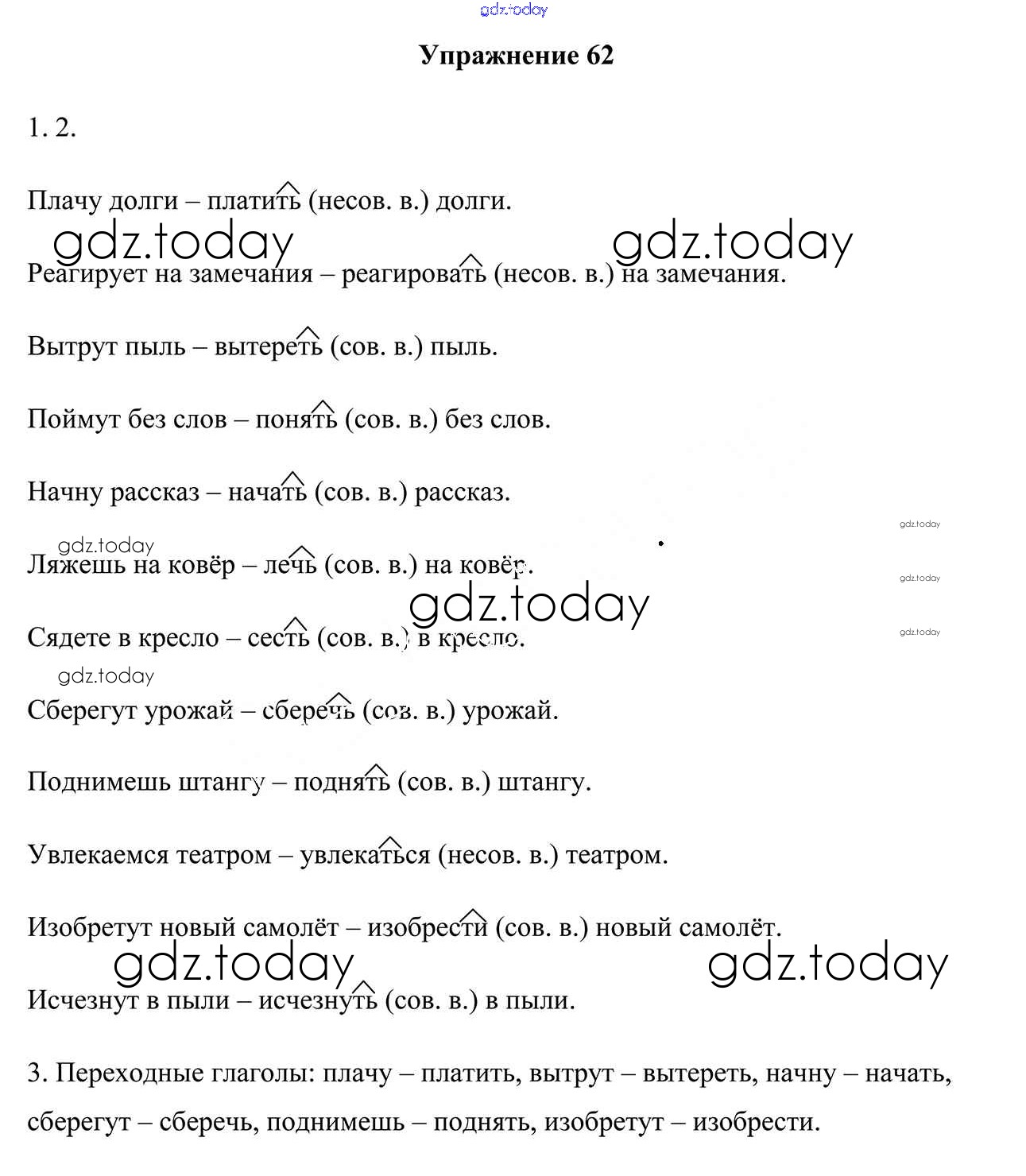 Ответы к Решение к упражнениям 62 Учебнику по Русскому языку для 7 класса Мурина, Волынец Национальный институт образования 2015