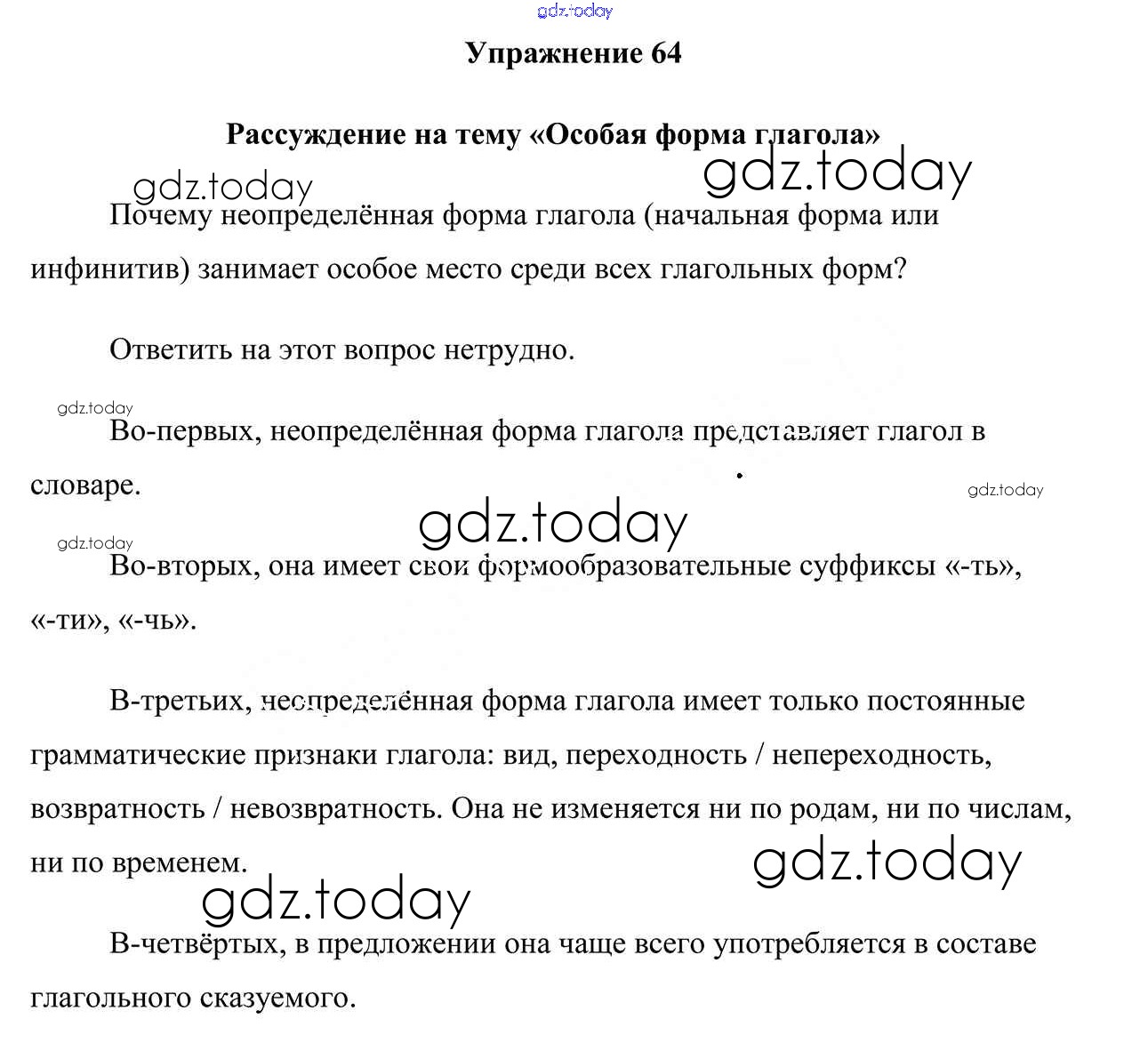 На страницах сайта gdz.today вы найдете учебный и вспомогательный материал, направленный на улучшения знаний школьной программы. ГДЗ - онлайн мир знаний Решение к упражнениям 64 Учебнику по Русскому языку для 7 класса Мурина, Волынец Национальный институт образования 2015