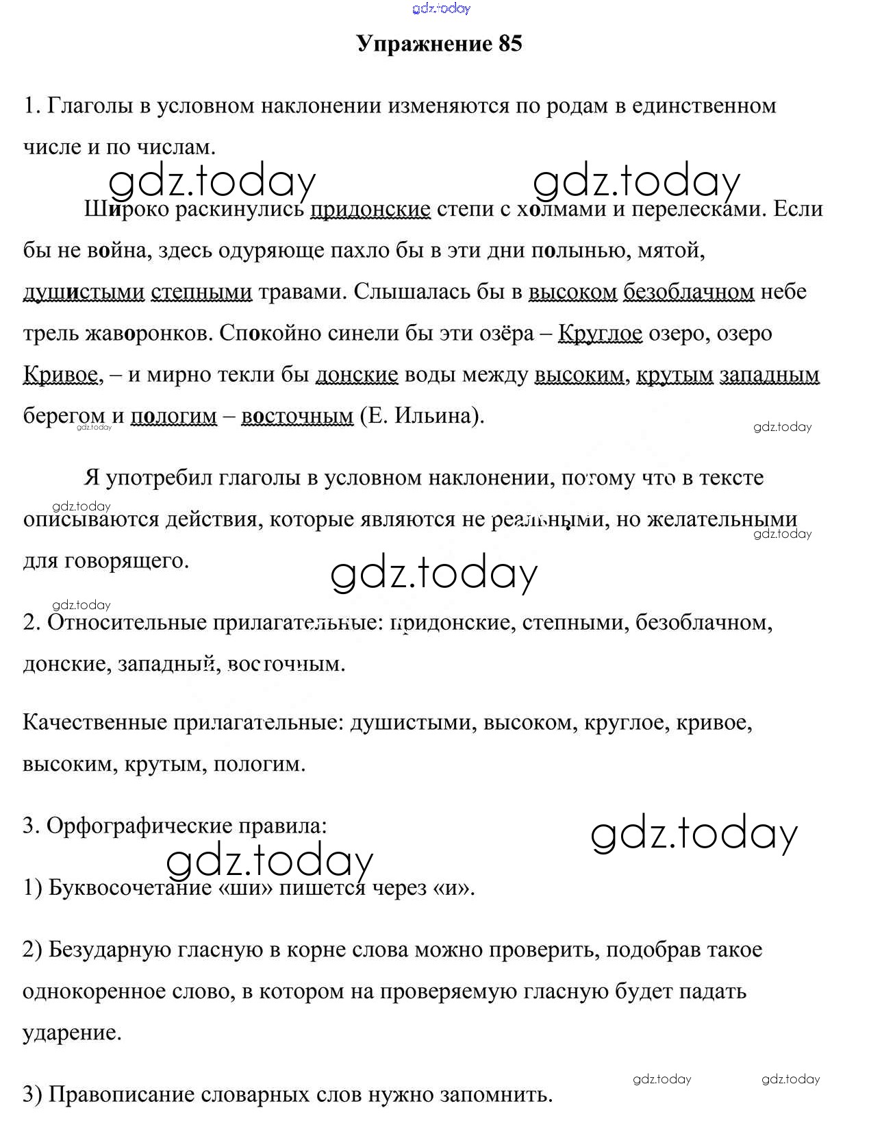 На страницах сайта gdz.today вы найдете учебный и вспомогательный материал, направленный на улучшения знаний школьной программы. ГДЗ - онлайн мир знаний Решение к упражнениям 85 Учебнику по Русскому языку для 7 класса Мурина, Волынец Национальный институт образования 2015