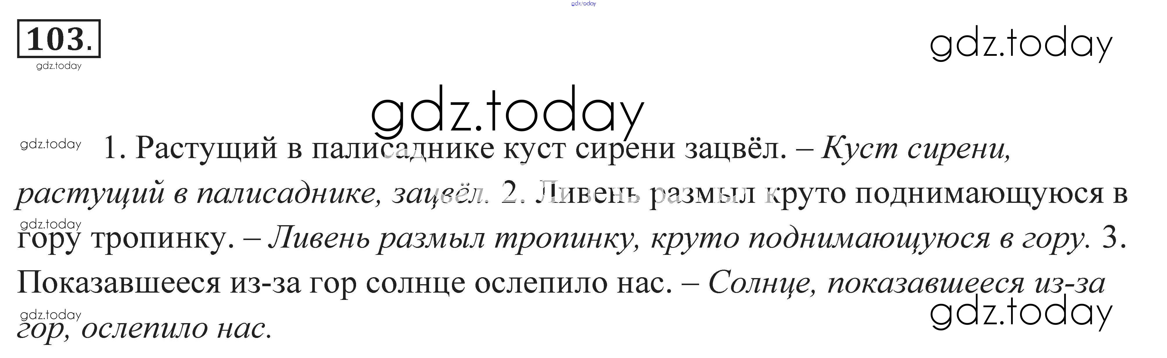 На страницах сайта gdz.today вы найдете учебный и вспомогательный материал, направленный на улучшения знаний школьной программы. ГДЗ - онлайн мир знаний Решение к заданиям 103 Практике по Русскому языку для 7 класса Пименова, Еремеева Дрофа 2016