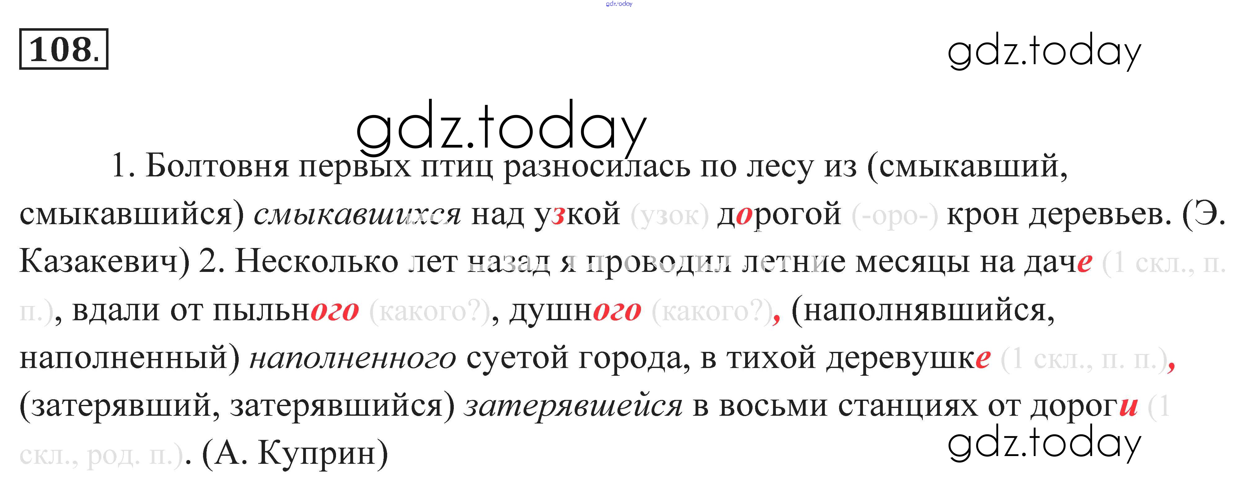 На страницах сайта gdz.today вы найдете учебный и вспомогательный материал, направленный на улучшения знаний школьной программы. ГДЗ - онлайн мир знаний Решение к заданиям 108 Практике по Русскому языку для 7 класса Пименова, Еремеева Дрофа 2016