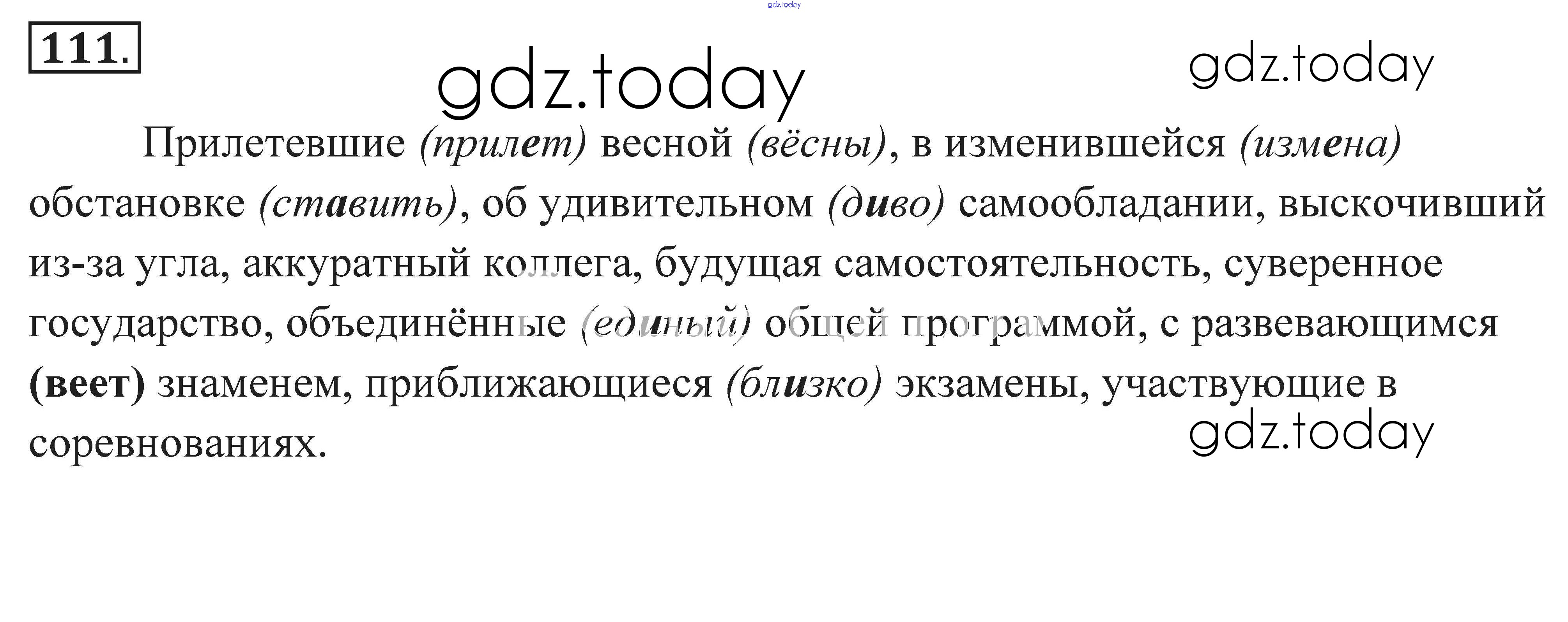 На страницах сайта gdz.today вы найдете учебный и вспомогательный материал, направленный на улучшения знаний школьной программы. ГДЗ - онлайн мир знаний Решение к заданиям 111 Практике по Русскому языку для 7 класса Пименова, Еремеева Дрофа 2016