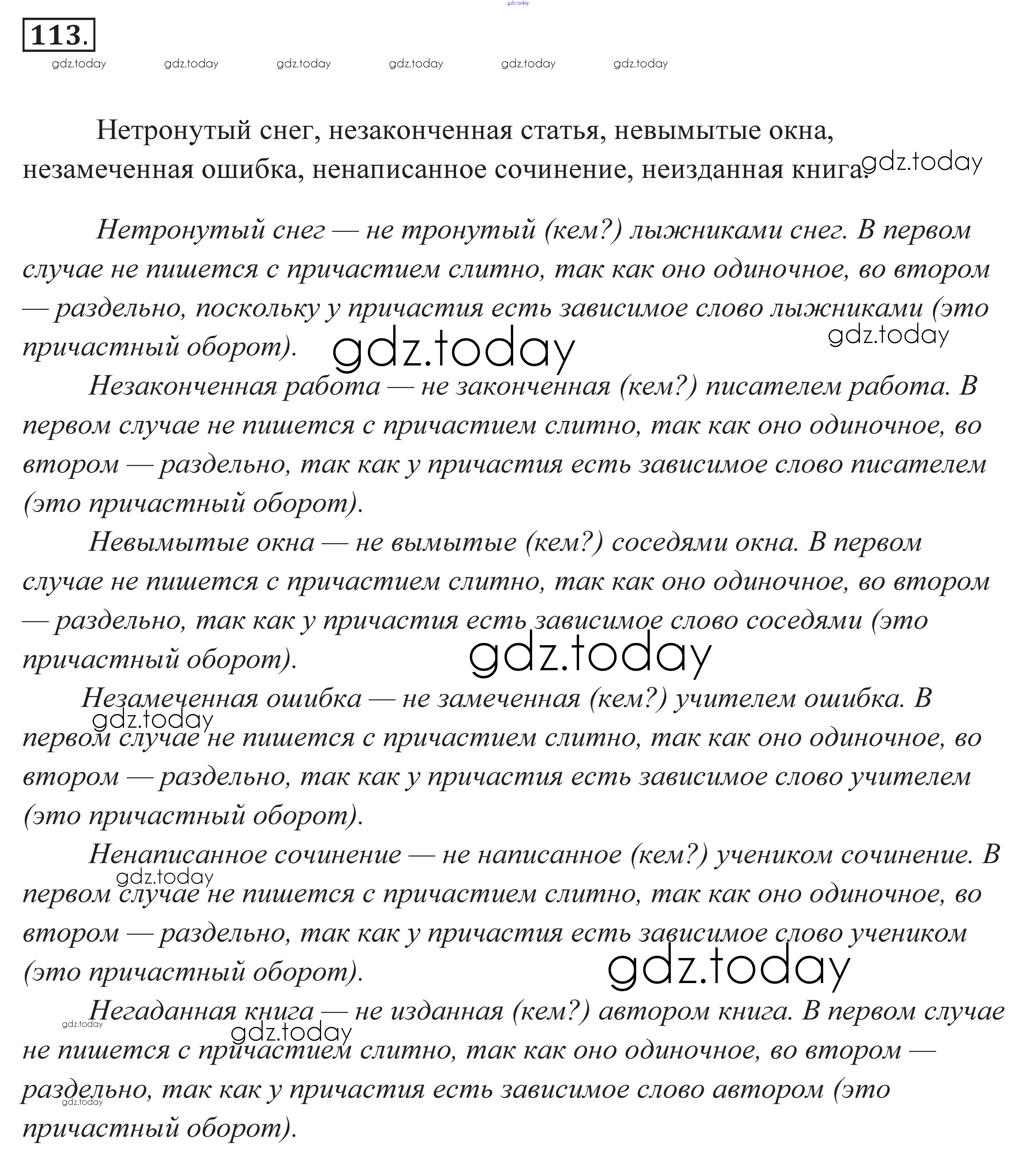 На страницах сайта gdz.today вы найдете учебный и вспомогательный материал, направленный на улучшения знаний школьной программы. ГДЗ - онлайн мир знаний Решение к заданиям 113 Практике по Русскому языку для 7 класса Пименова, Еремеева Дрофа 2016