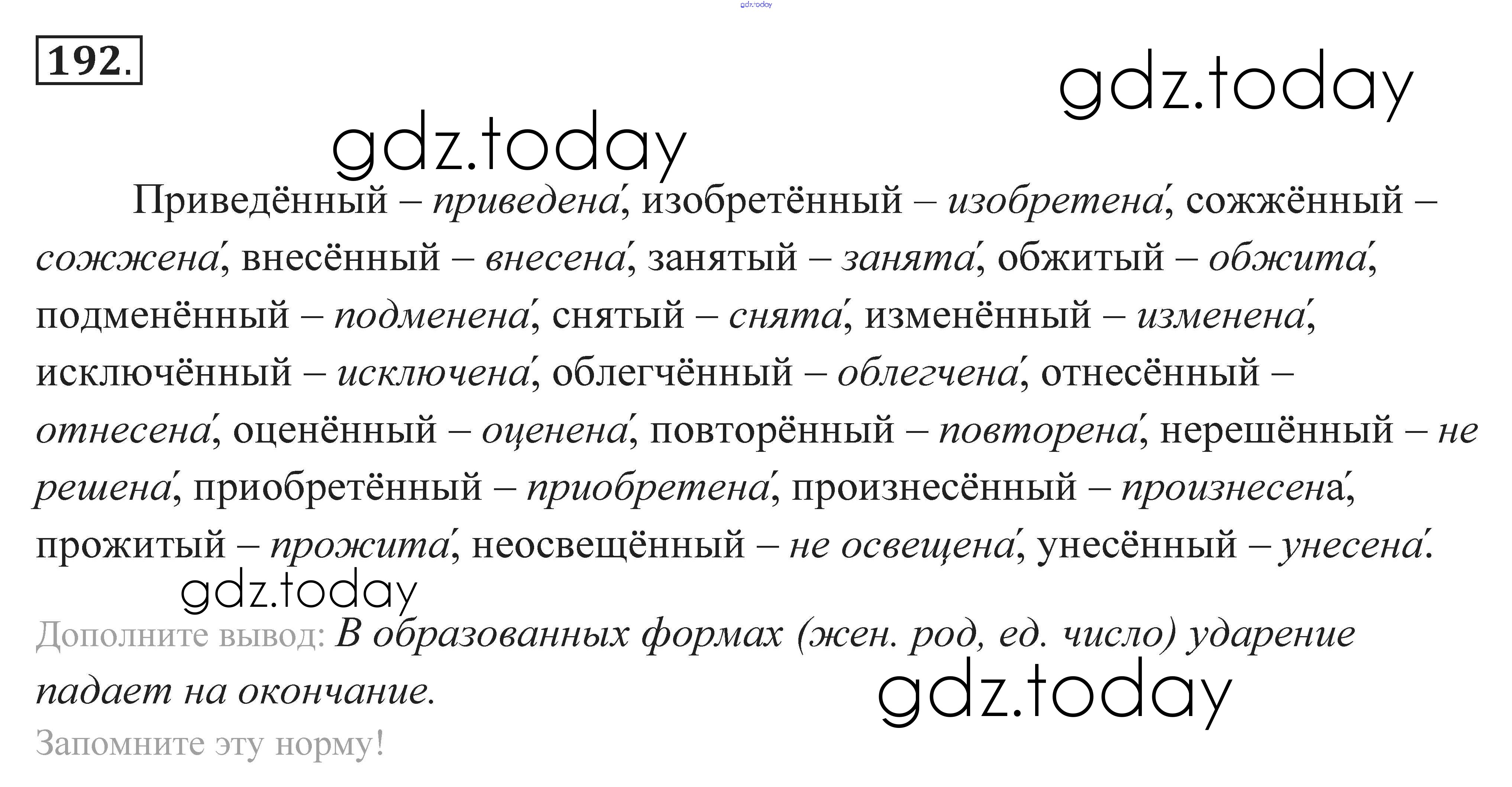 На страницах сайта gdz.today вы найдете учебный и вспомогательный материал, направленный на улучшения знаний школьной программы. ГДЗ - онлайн мир знаний Решение к заданиям 192 Практике по Русскому языку для 7 класса Пименова, Еремеева Дрофа 2016