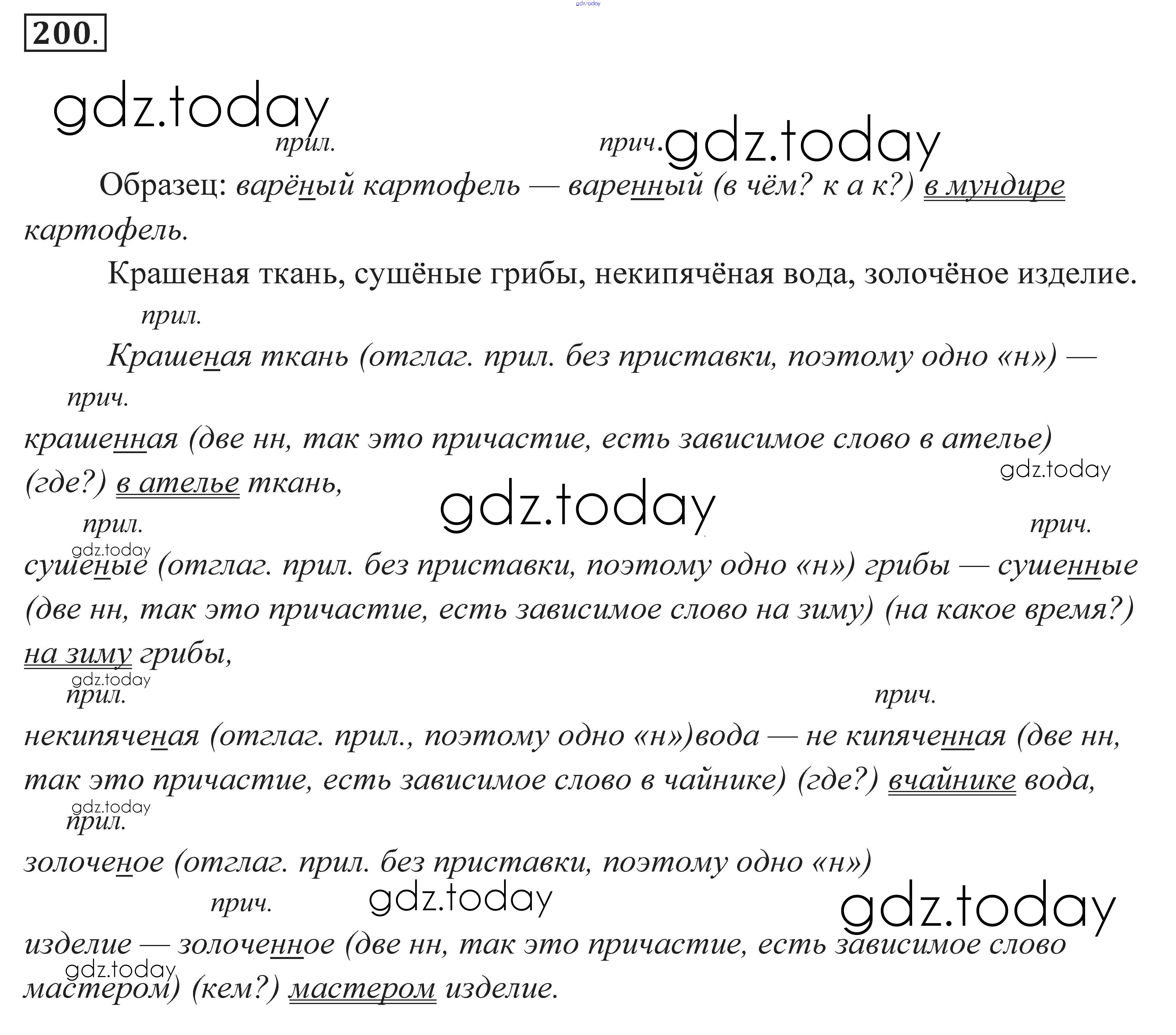 На страницах сайта gdz.today вы найдете учебный и вспомогательный материал, направленный на улучшения знаний школьной программы. ГДЗ - онлайн мир знаний Решение к заданиям 200 Практике по Русскому языку для 7 класса Пименова, Еремеева Дрофа 2016
