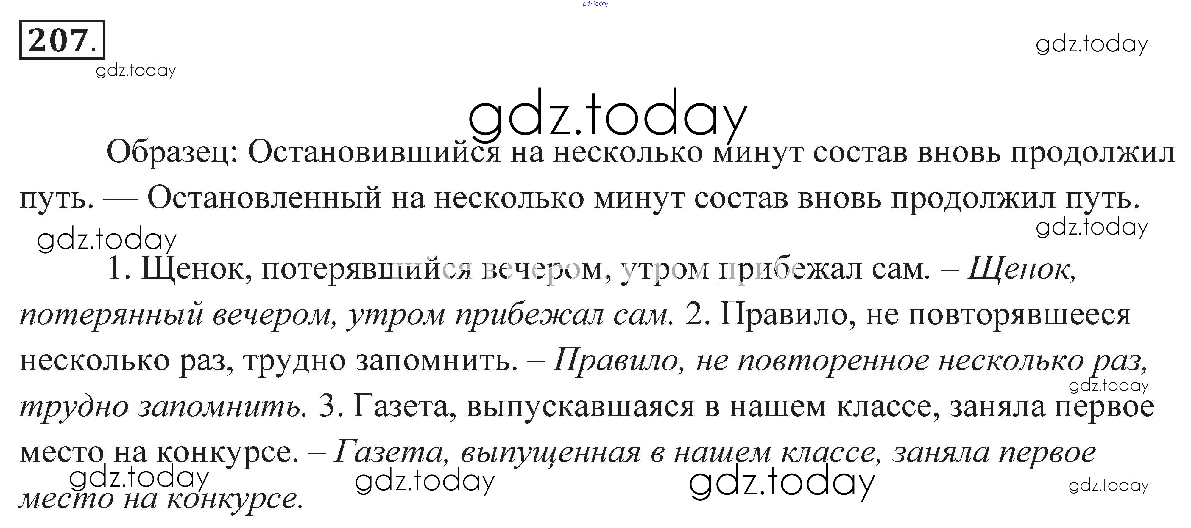 На страницах сайта gdz.today вы найдете учебный и вспомогательный материал, направленный на улучшения знаний школьной программы. ГДЗ - онлайн мир знаний Решение к заданиям 207 Практике по Русскому языку для 7 класса Пименова, Еремеева Дрофа 2016