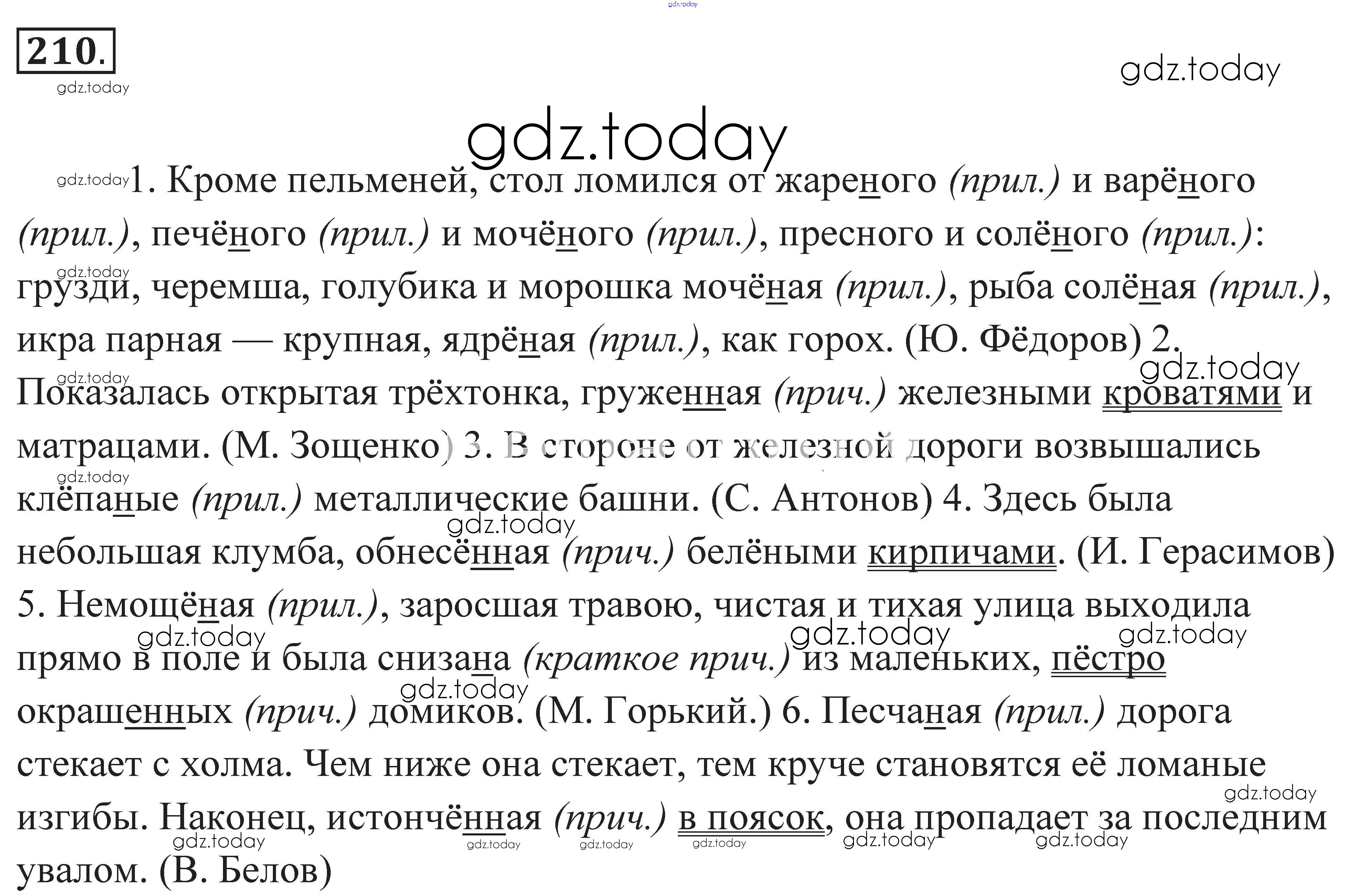 На страницах сайта gdz.today вы найдете учебный и вспомогательный материал, направленный на улучшения знаний школьной программы. ГДЗ - онлайн мир знаний Решение к заданиям 210 Практике по Русскому языку для 7 класса Пименова, Еремеева Дрофа 2016