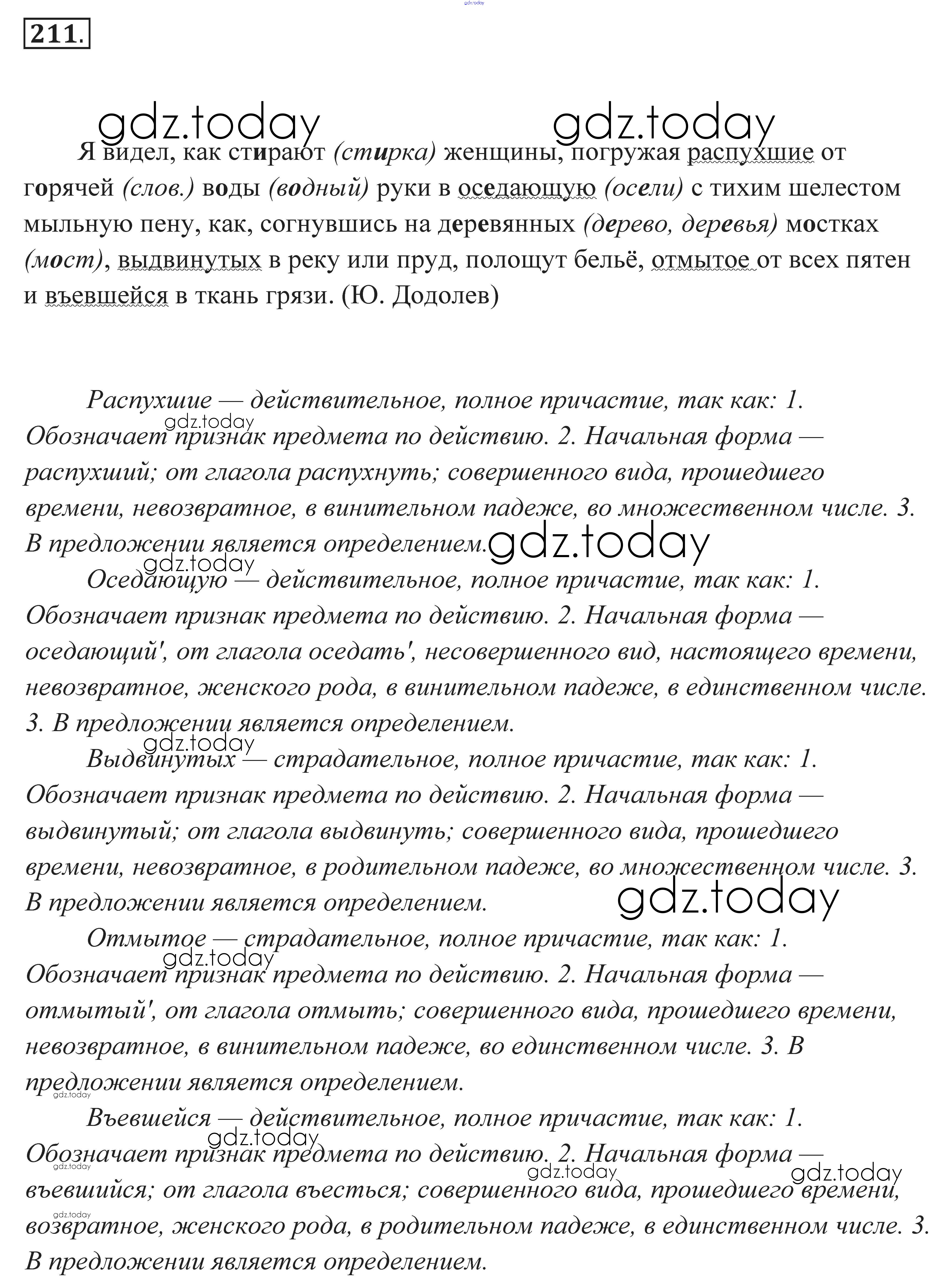 На страницах сайта gdz.today вы найдете учебный и вспомогательный материал, направленный на улучшения знаний школьной программы. ГДЗ - онлайн мир знаний Решение к заданиям 211 Практике по Русскому языку для 7 класса Пименова, Еремеева Дрофа 2016