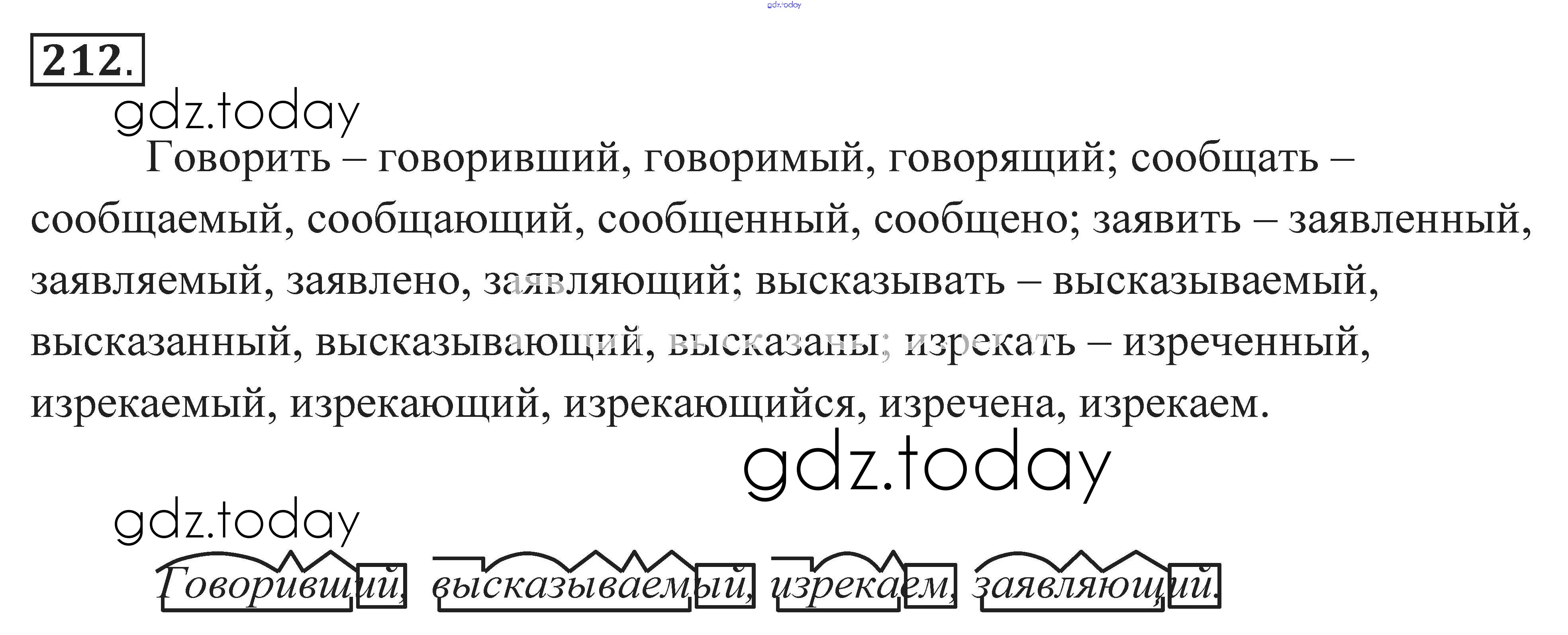 На страницах сайта gdz.today вы найдете учебный и вспомогательный материал, направленный на улучшения знаний школьной программы. ГДЗ - онлайн мир знаний Решение к заданиям 212 Практике по Русскому языку для 7 класса Пименова, Еремеева Дрофа 2016