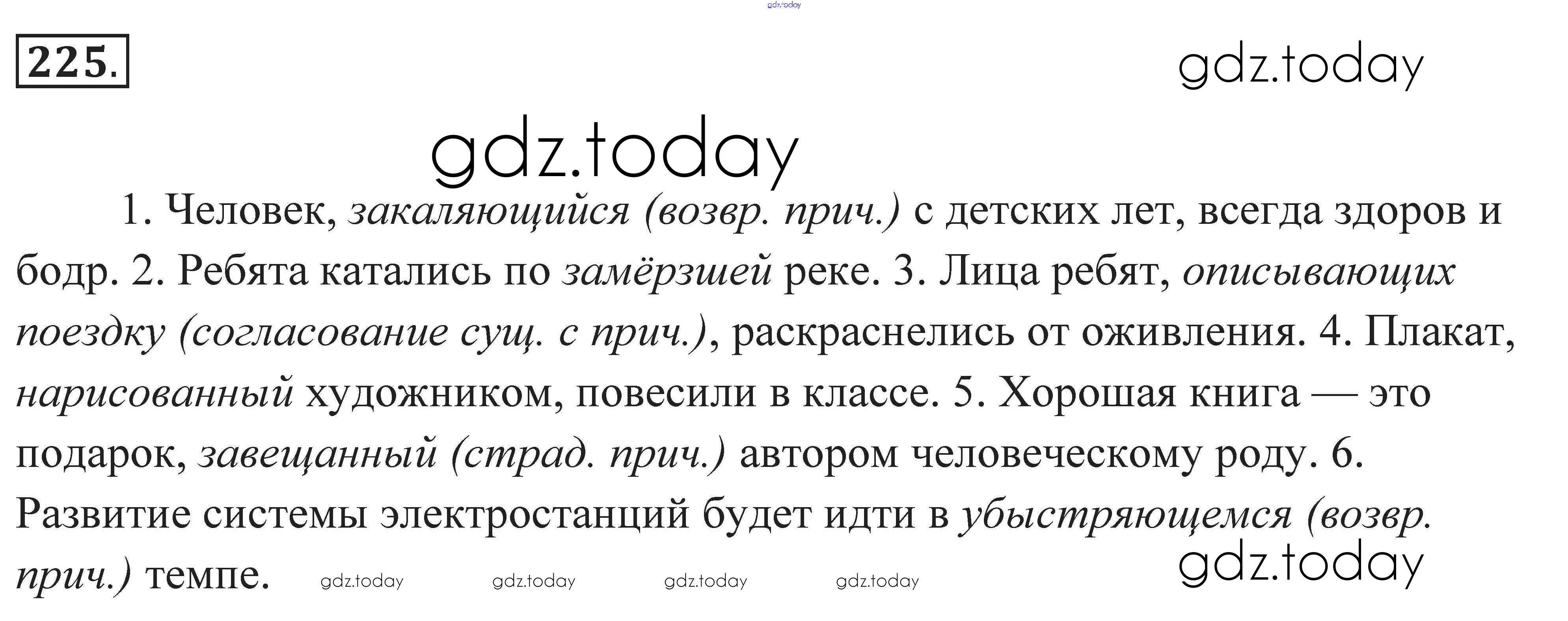 На страницах сайта gdz.today вы найдете учебный и вспомогательный материал, направленный на улучшения знаний школьной программы. ГДЗ - онлайн мир знаний Решение к заданиям 225 Практике по Русскому языку для 7 класса Пименова, Еремеева Дрофа 2016