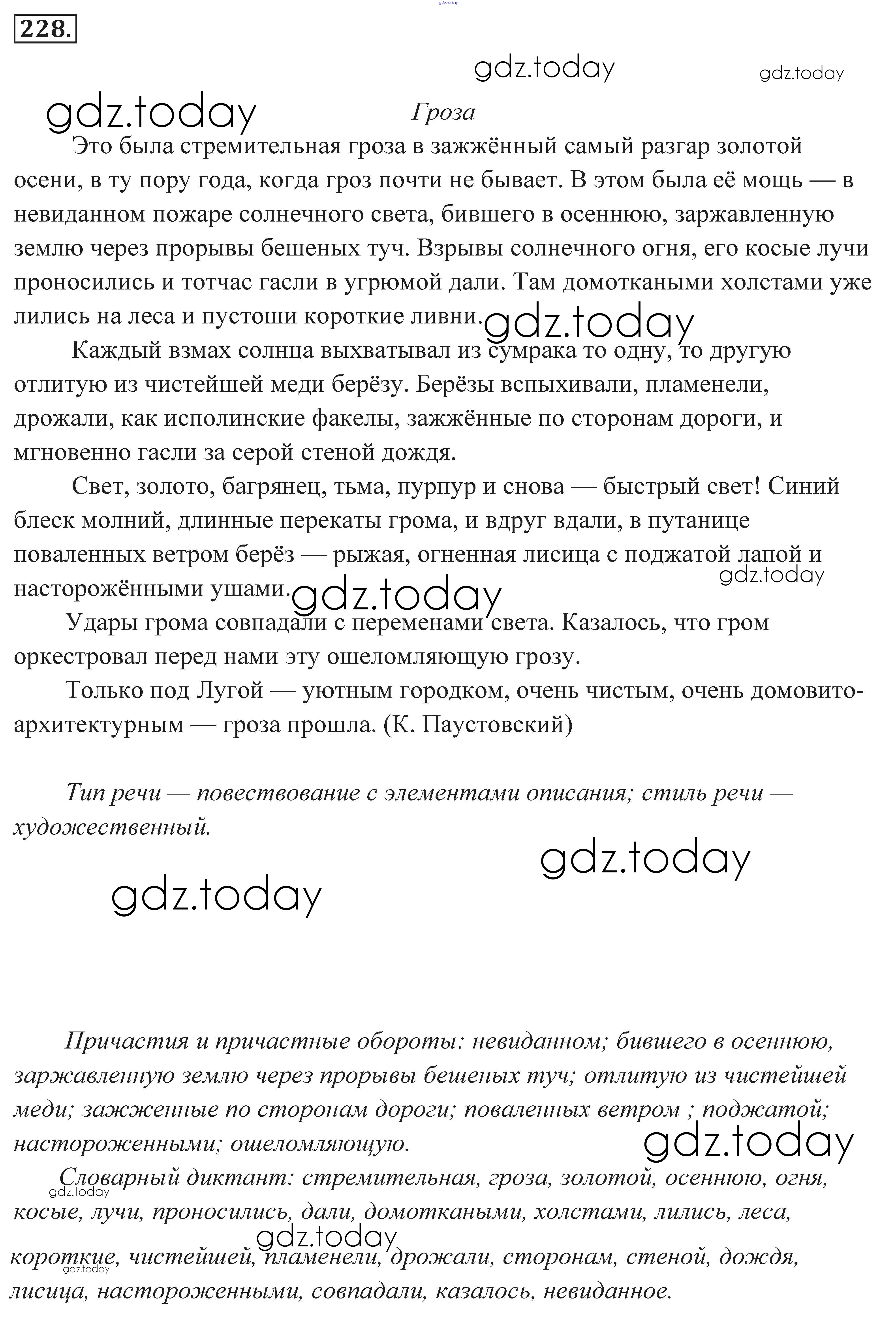 Ответы к Решение к заданиям 228 Практике по Русскому языку для 7 класса Пименова, Еремеева Дрофа 2016