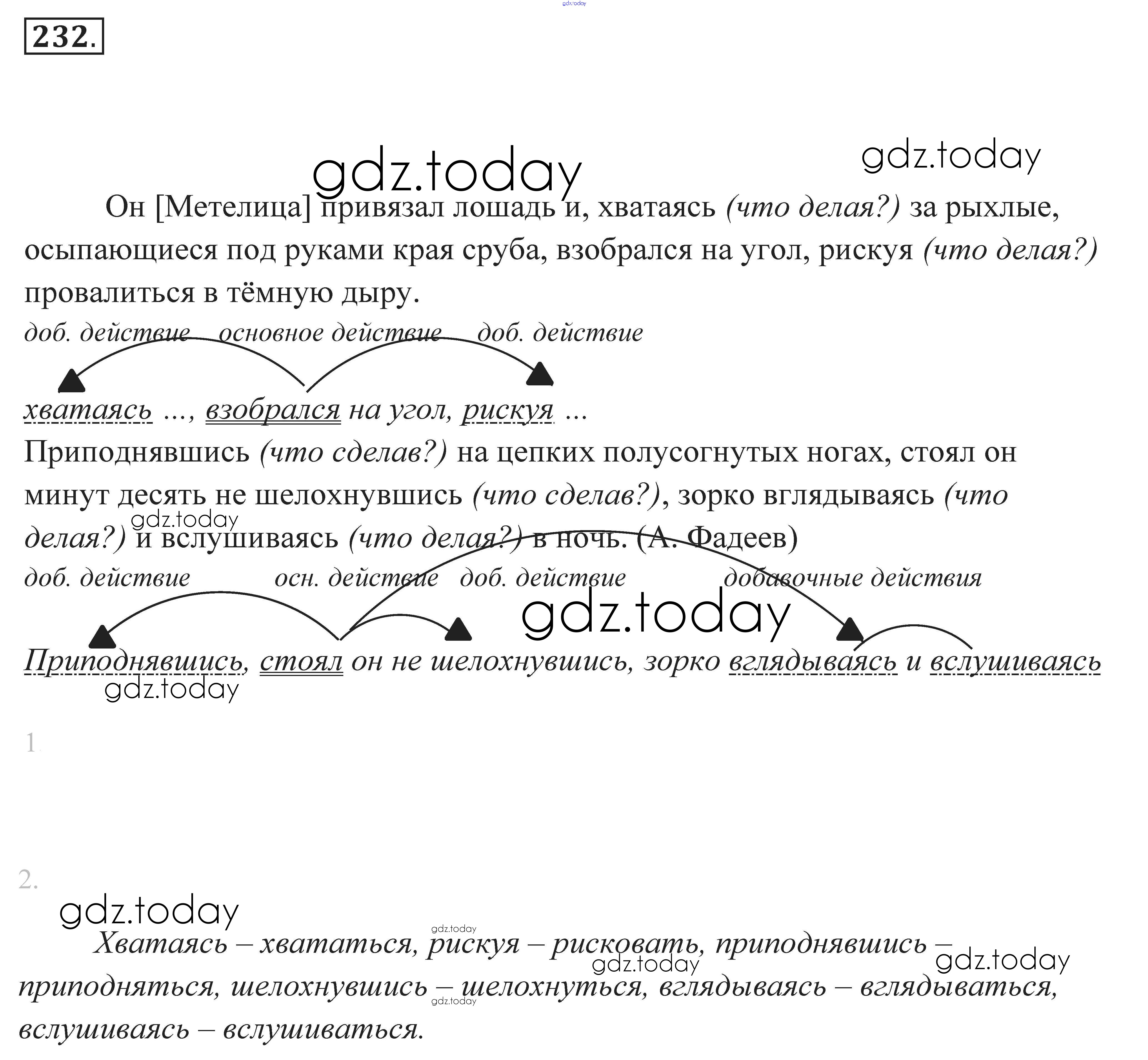 На страницах сайта gdz.today вы найдете учебный и вспомогательный материал, направленный на улучшения знаний школьной программы. ГДЗ - онлайн мир знаний Решение к заданиям 232 Практике по Русскому языку для 7 класса Пименова, Еремеева Дрофа 2016