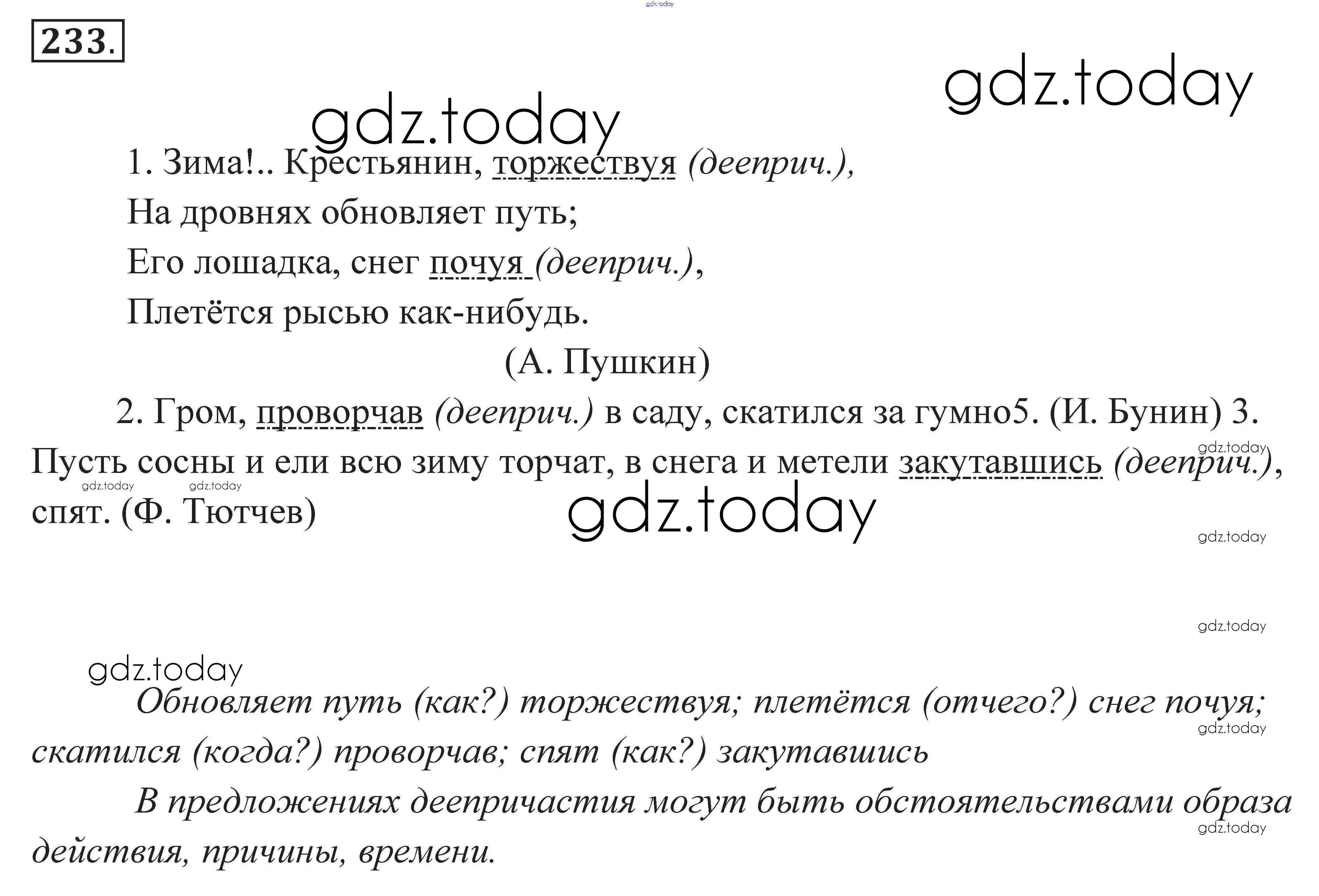 На страницах сайта gdz.today вы найдете учебный и вспомогательный материал, направленный на улучшения знаний школьной программы. ГДЗ - онлайн мир знаний Решение к заданиям 233 Практике по Русскому языку для 7 класса Пименова, Еремеева Дрофа 2016