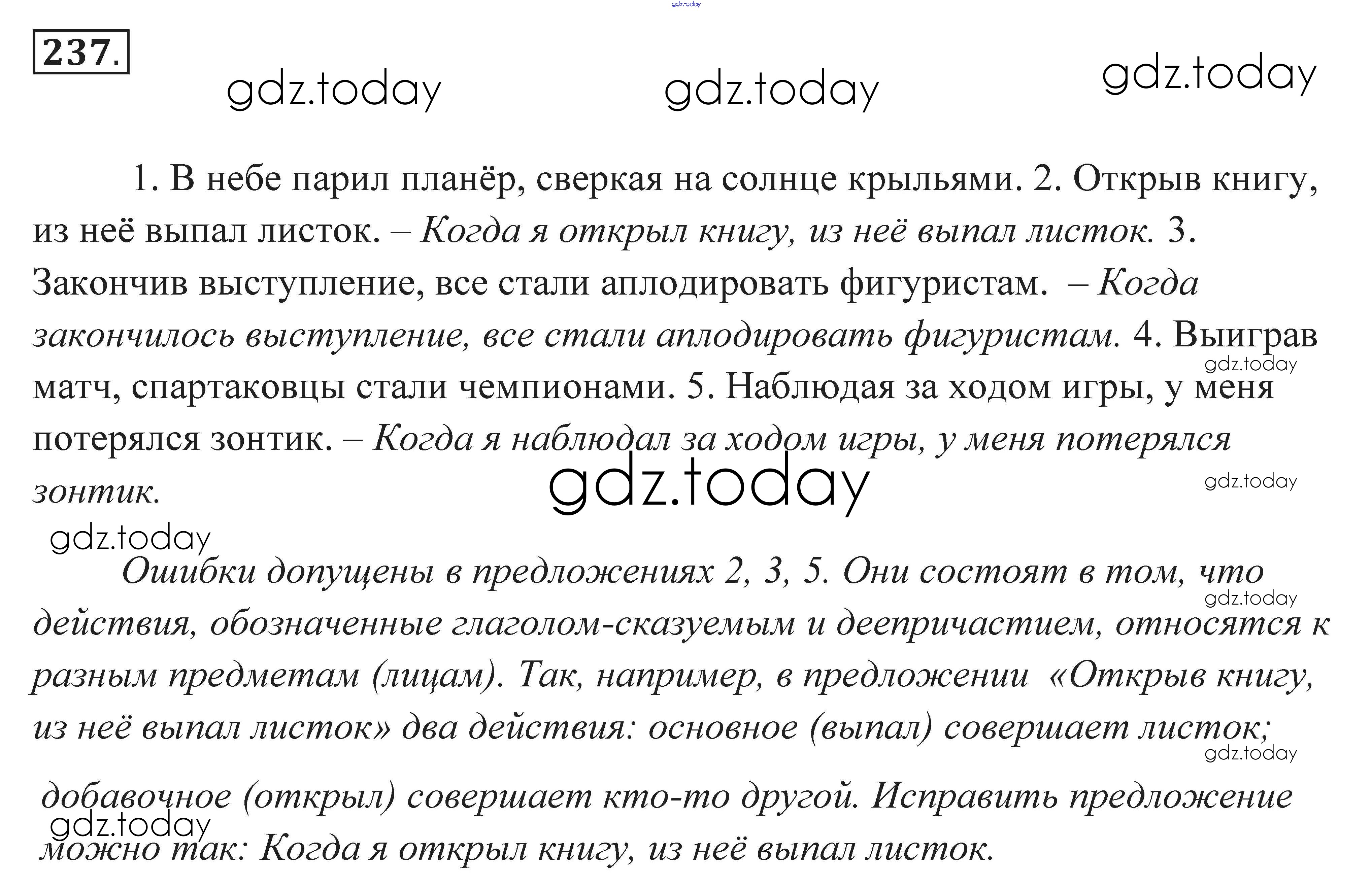 На страницах сайта gdz.today вы найдете учебный и вспомогательный материал, направленный на улучшения знаний школьной программы. ГДЗ - онлайн мир знаний Решение к заданиям 237 Практике по Русскому языку для 7 класса Пименова, Еремеева Дрофа 2016