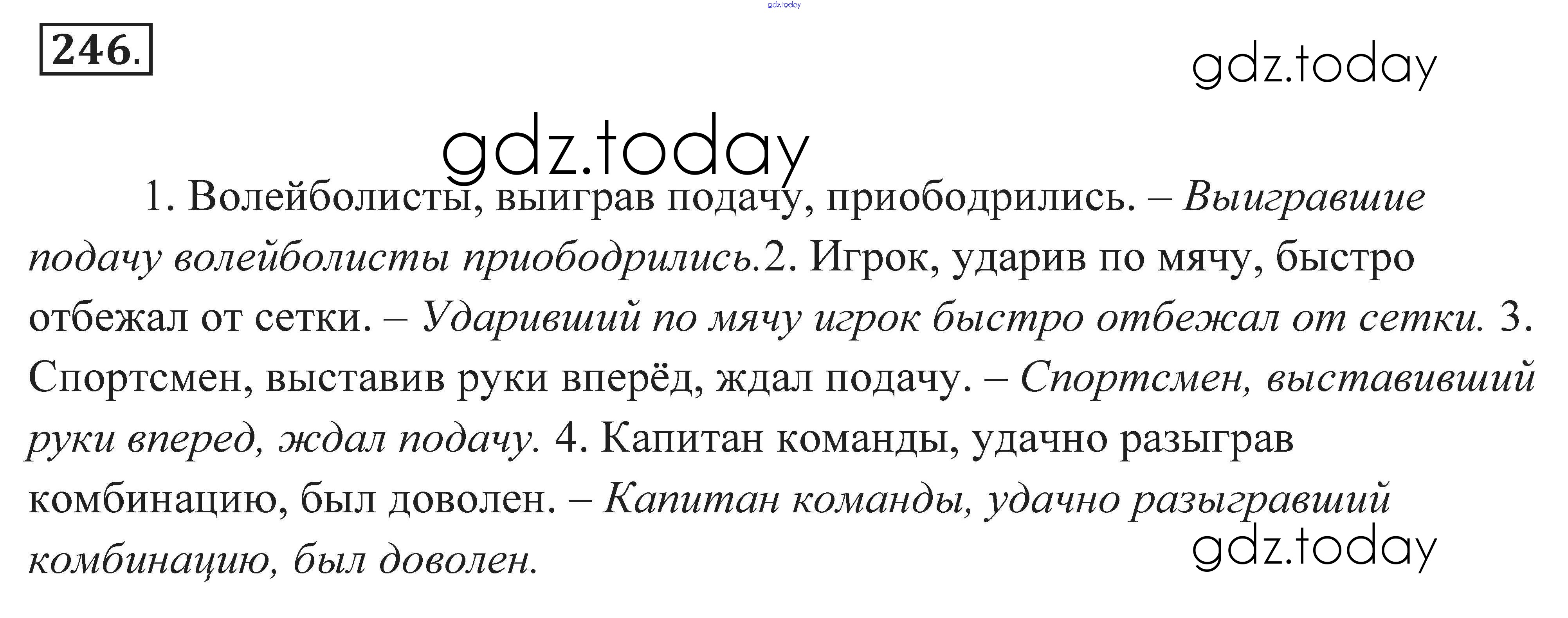 На страницах сайта gdz.today вы найдете учебный и вспомогательный материал, направленный на улучшения знаний школьной программы. ГДЗ - онлайн мир знаний Решение к заданиям 246 Практике по Русскому языку для 7 класса Пименова, Еремеева Дрофа 2016