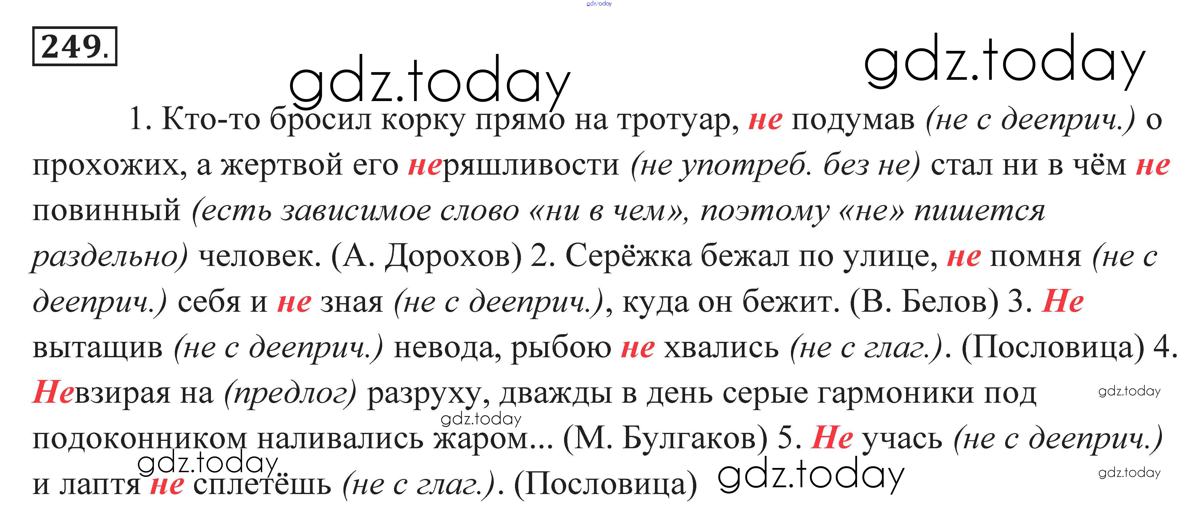 На страницах сайта gdz.today вы найдете учебный и вспомогательный материал, направленный на улучшения знаний школьной программы. ГДЗ - онлайн мир знаний Решение к заданиям 249 Практике по Русскому языку для 7 класса Пименова, Еремеева Дрофа 2016