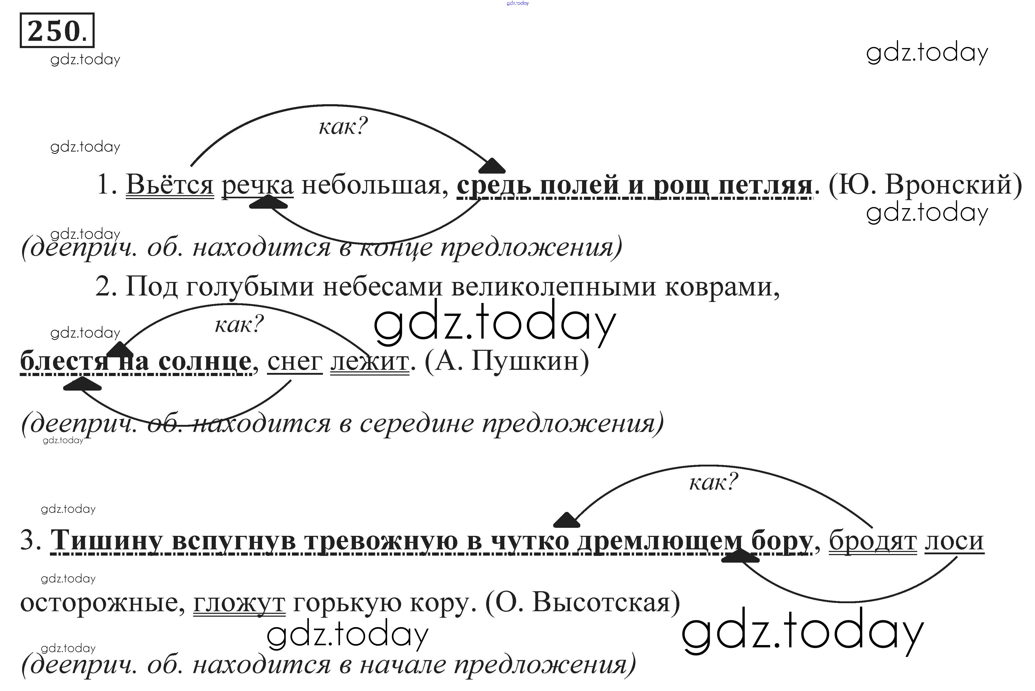 На страницах сайта gdz.today вы найдете учебный и вспомогательный материал, направленный на улучшения знаний школьной программы. ГДЗ - онлайн мир знаний Решение к заданиям 250 Практике по Русскому языку для 7 класса Пименова, Еремеева Дрофа 2016