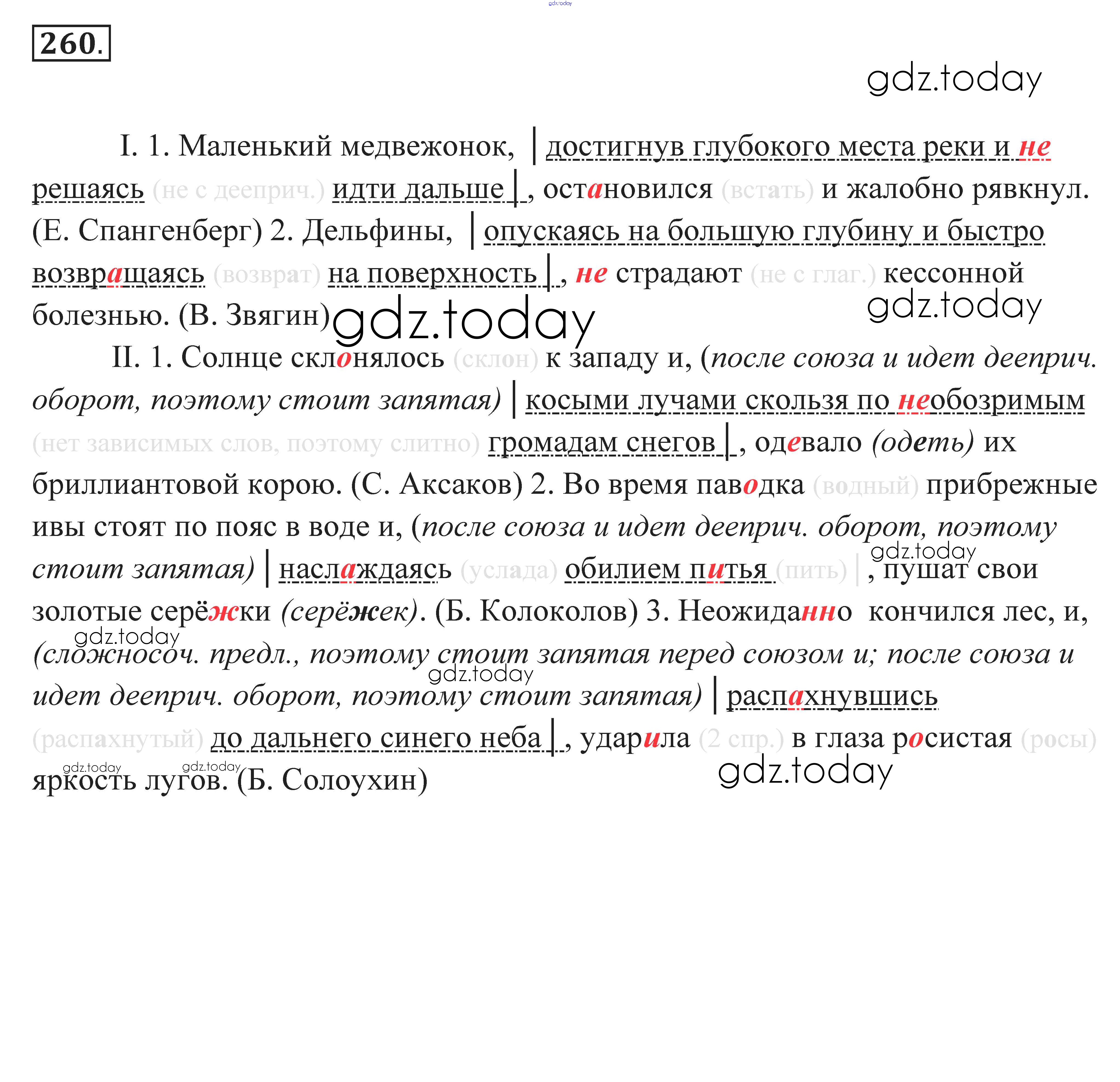 На страницах сайта gdz.today вы найдете учебный и вспомогательный материал, направленный на улучшения знаний школьной программы. ГДЗ - онлайн мир знаний Решение к заданиям 260 Практике по Русскому языку для 7 класса Пименова, Еремеева Дрофа 2016