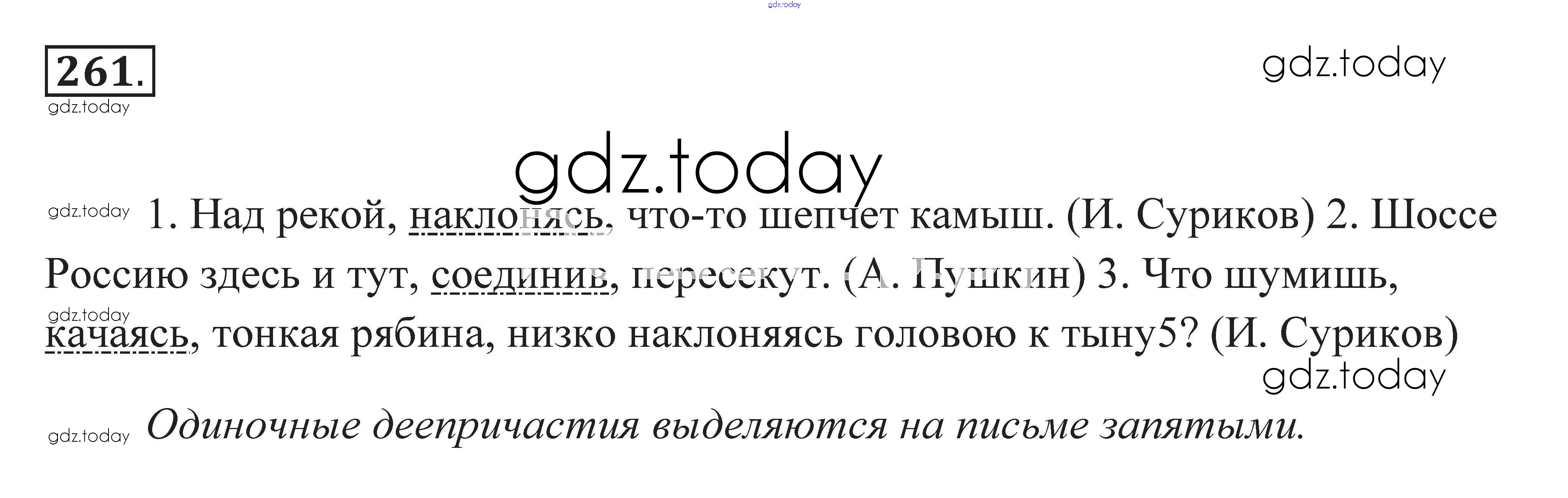 На страницах сайта gdz.today вы найдете учебный и вспомогательный материал, направленный на улучшения знаний школьной программы. ГДЗ - онлайн мир знаний Решение к заданиям 261 Практике по Русскому языку для 7 класса Пименова, Еремеева Дрофа 2016