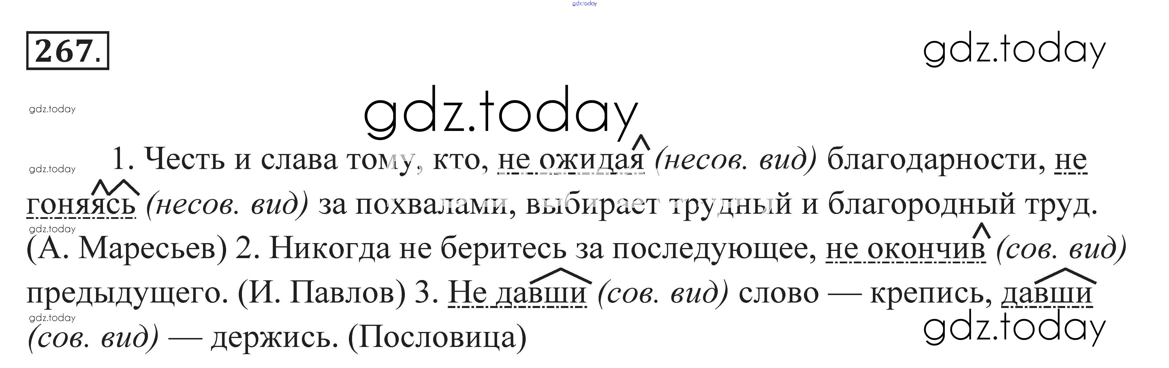 На страницах сайта gdz.today вы найдете учебный и вспомогательный материал, направленный на улучшения знаний школьной программы. ГДЗ - онлайн мир знаний Решение к заданиям 267 Практике по Русскому языку для 7 класса Пименова, Еремеева Дрофа 2016
