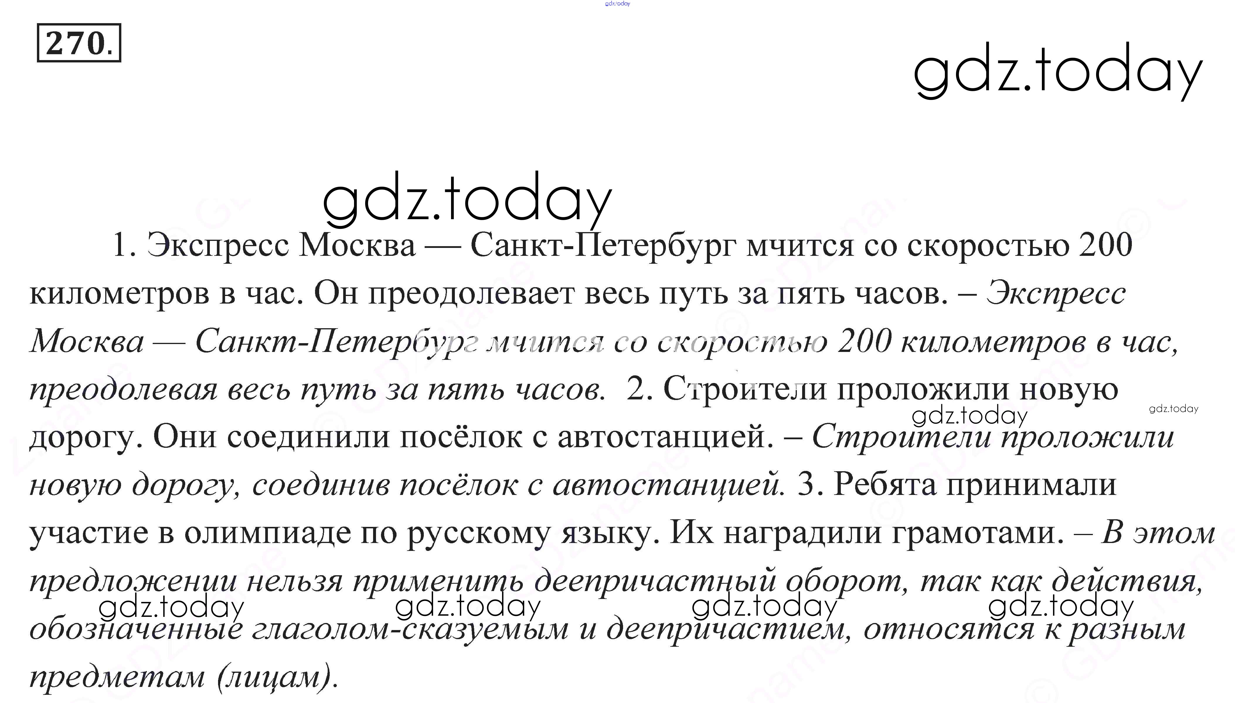 На страницах сайта gdz.today вы найдете учебный и вспомогательный материал, направленный на улучшения знаний школьной программы. ГДЗ - онлайн мир знаний Решение к заданиям 270 Практике по Русскому языку для 7 класса Пименова, Еремеева Дрофа 2016