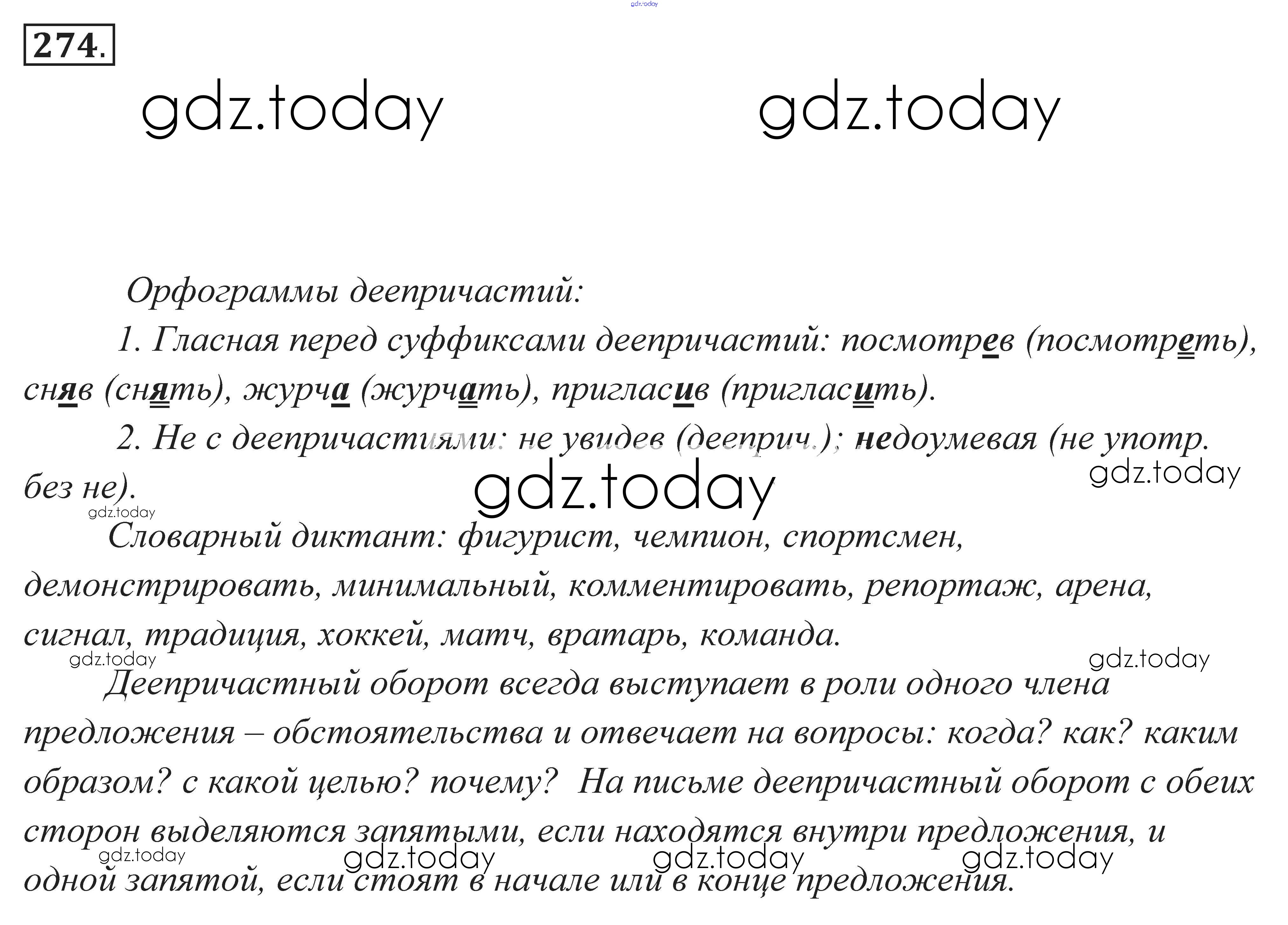 На страницах сайта gdz.today вы найдете учебный и вспомогательный материал, направленный на улучшения знаний школьной программы. ГДЗ - онлайн мир знаний Решение к заданиям 274 Практике по Русскому языку для 7 класса Пименова, Еремеева Дрофа 2016