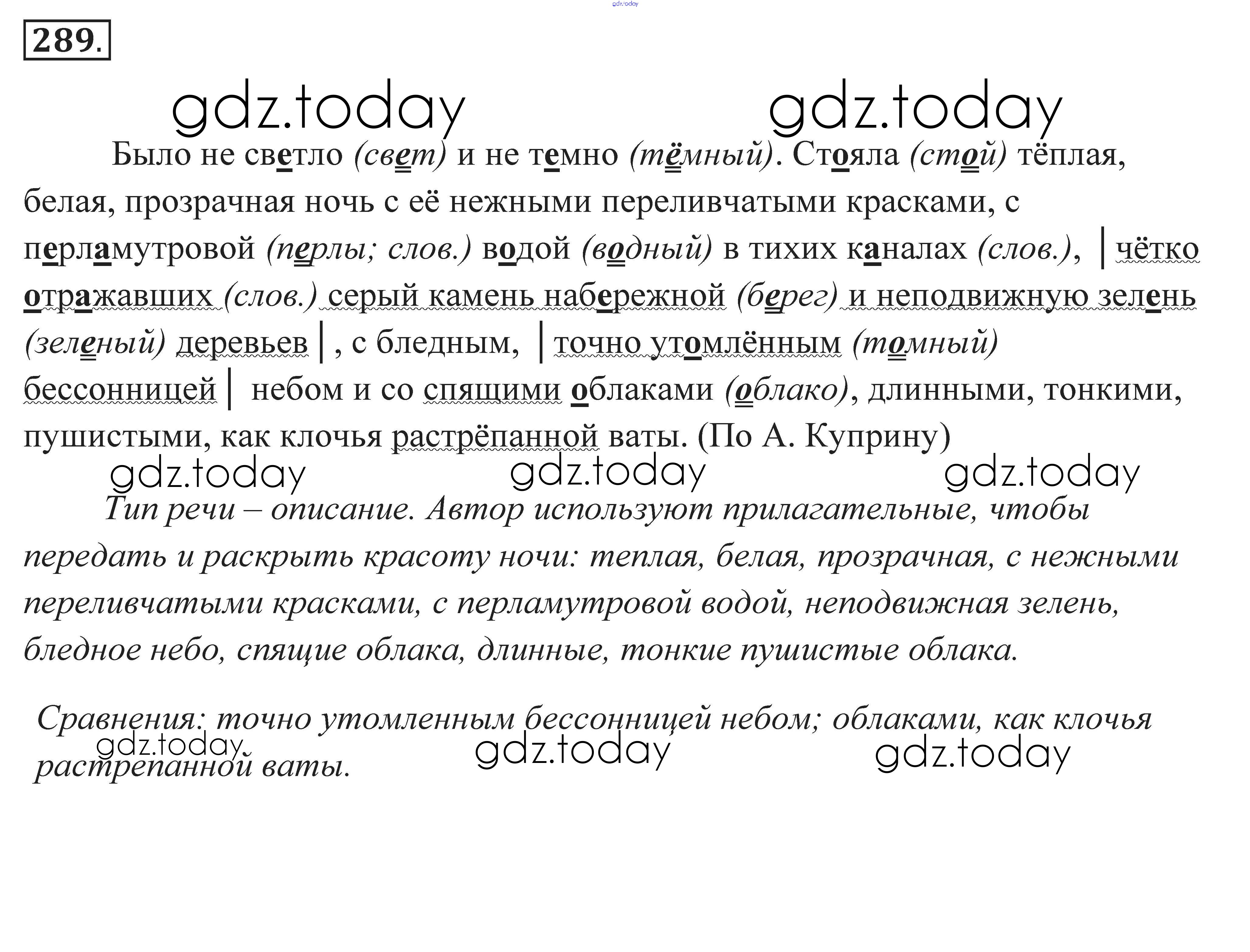 Ответы к Решение к заданиям 289 Практике по Русскому языку для 7 класса Пименова, Еремеева Дрофа 2016