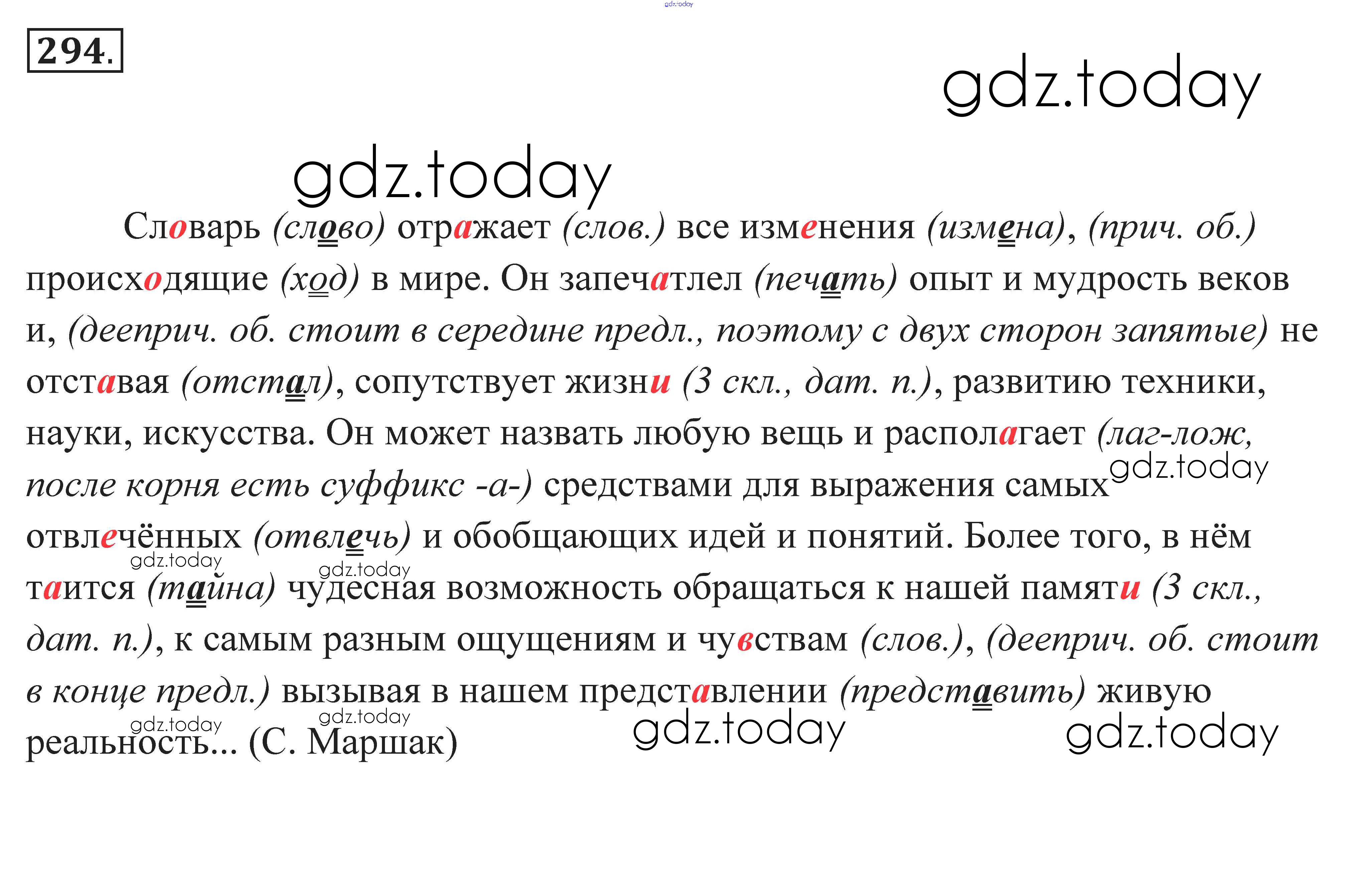 На страницах сайта gdz.today вы найдете учебный и вспомогательный материал, направленный на улучшения знаний школьной программы. ГДЗ - онлайн мир знаний Решение к заданиям 294 Практике по Русскому языку для 7 класса Пименова, Еремеева Дрофа 2016