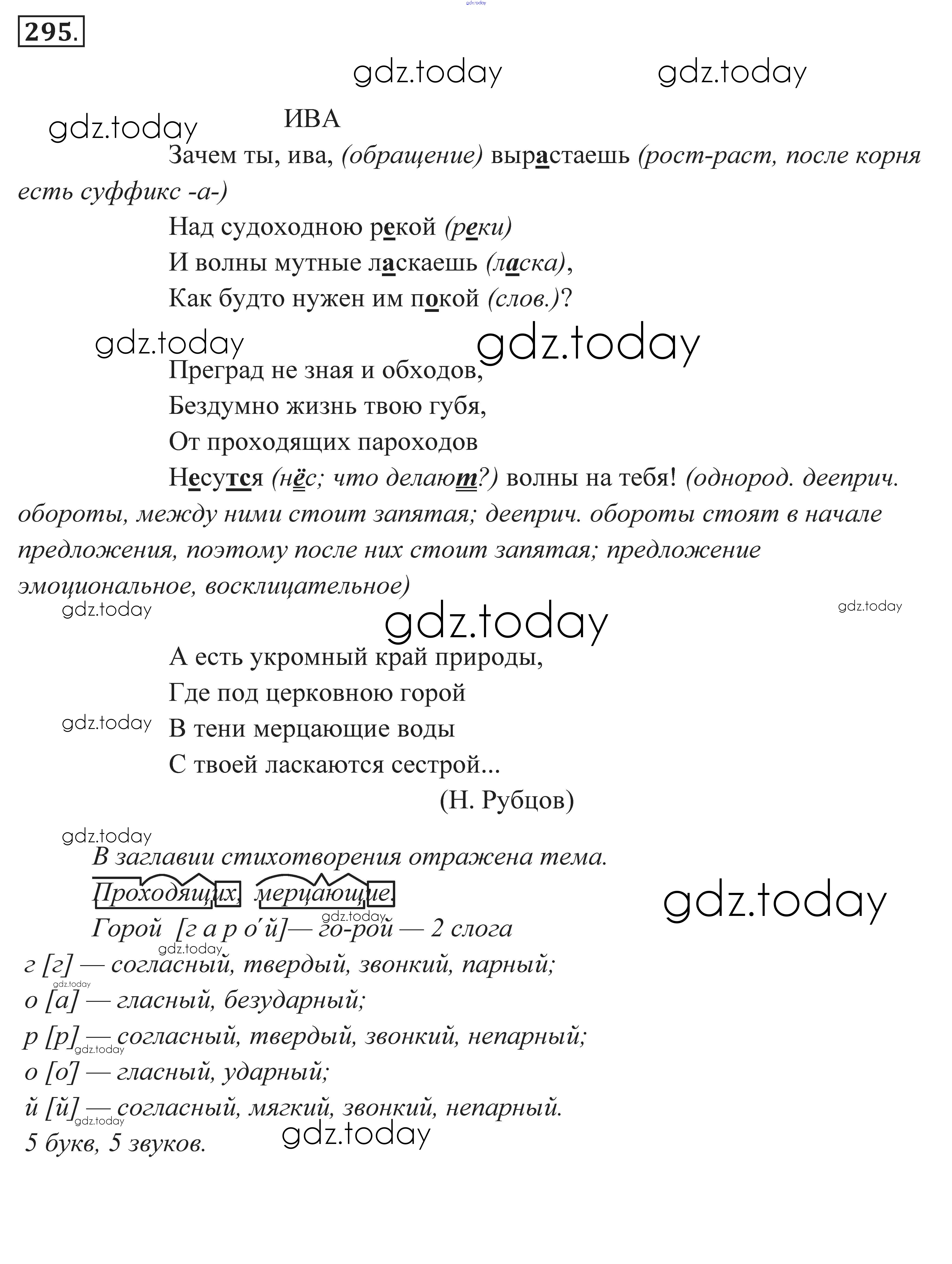 На страницах сайта gdz.today вы найдете учебный и вспомогательный материал, направленный на улучшения знаний школьной программы. ГДЗ - онлайн мир знаний Решение к заданиям 295 Практике по Русскому языку для 7 класса Пименова, Еремеева Дрофа 2016