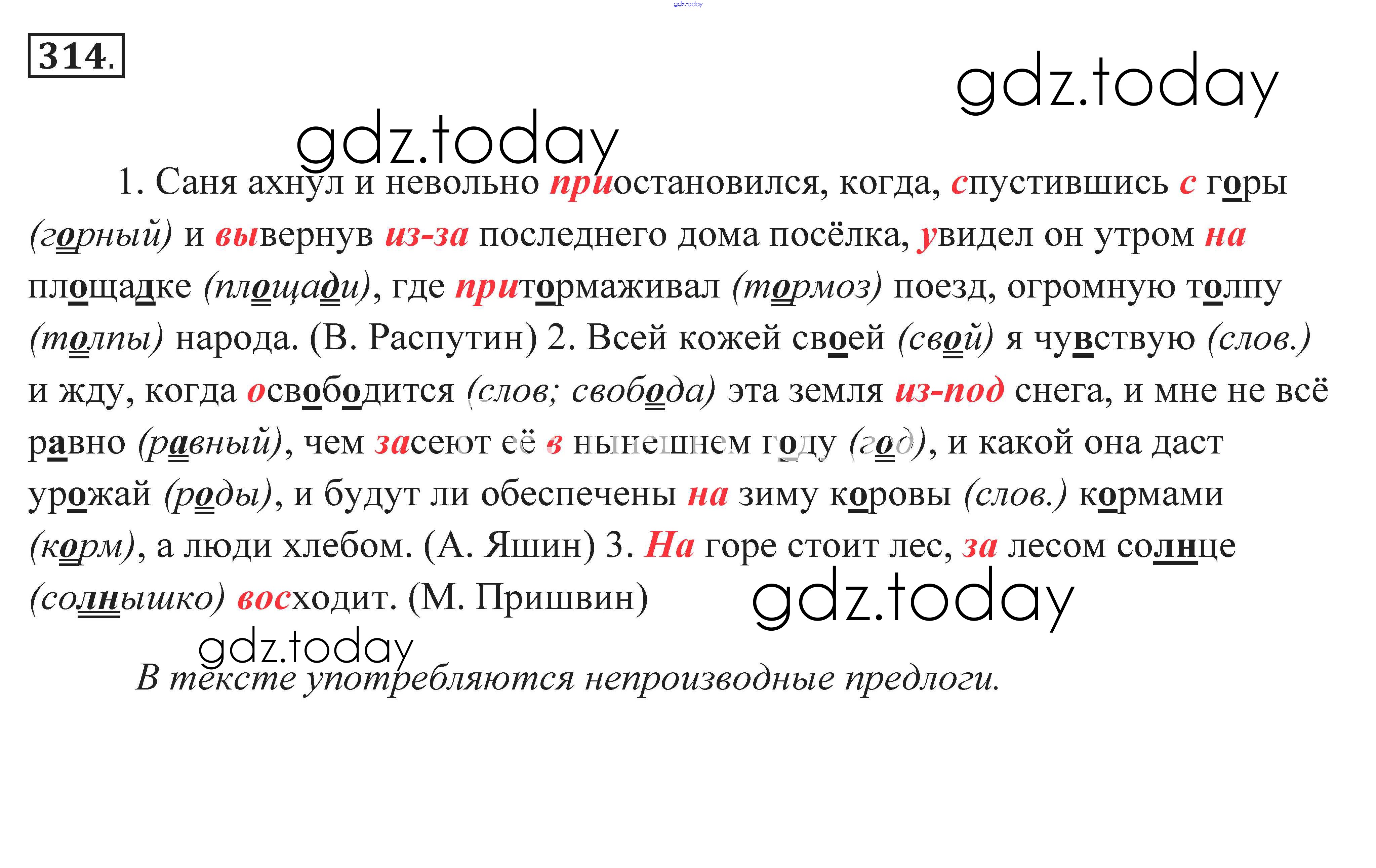 На страницах сайта gdz.today вы найдете учебный и вспомогательный материал, направленный на улучшения знаний школьной программы. ГДЗ - онлайн мир знаний Решение к заданиям 314 Практике по Русскому языку для 7 класса Пименова, Еремеева Дрофа 2016