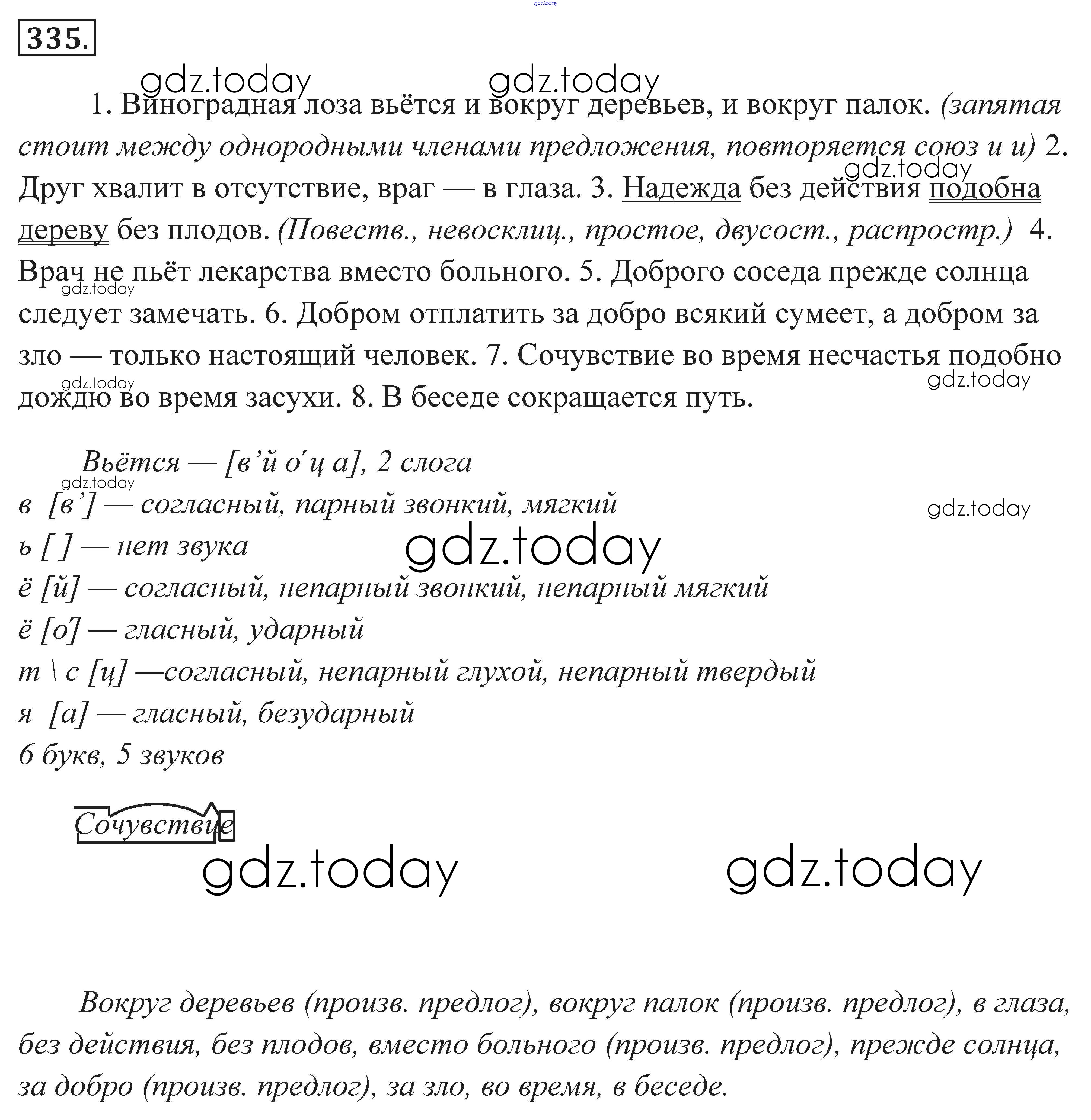 Ответы к Решение к заданиям 335 Практике по Русскому языку для 7 класса Пименова, Еремеева Дрофа 2016