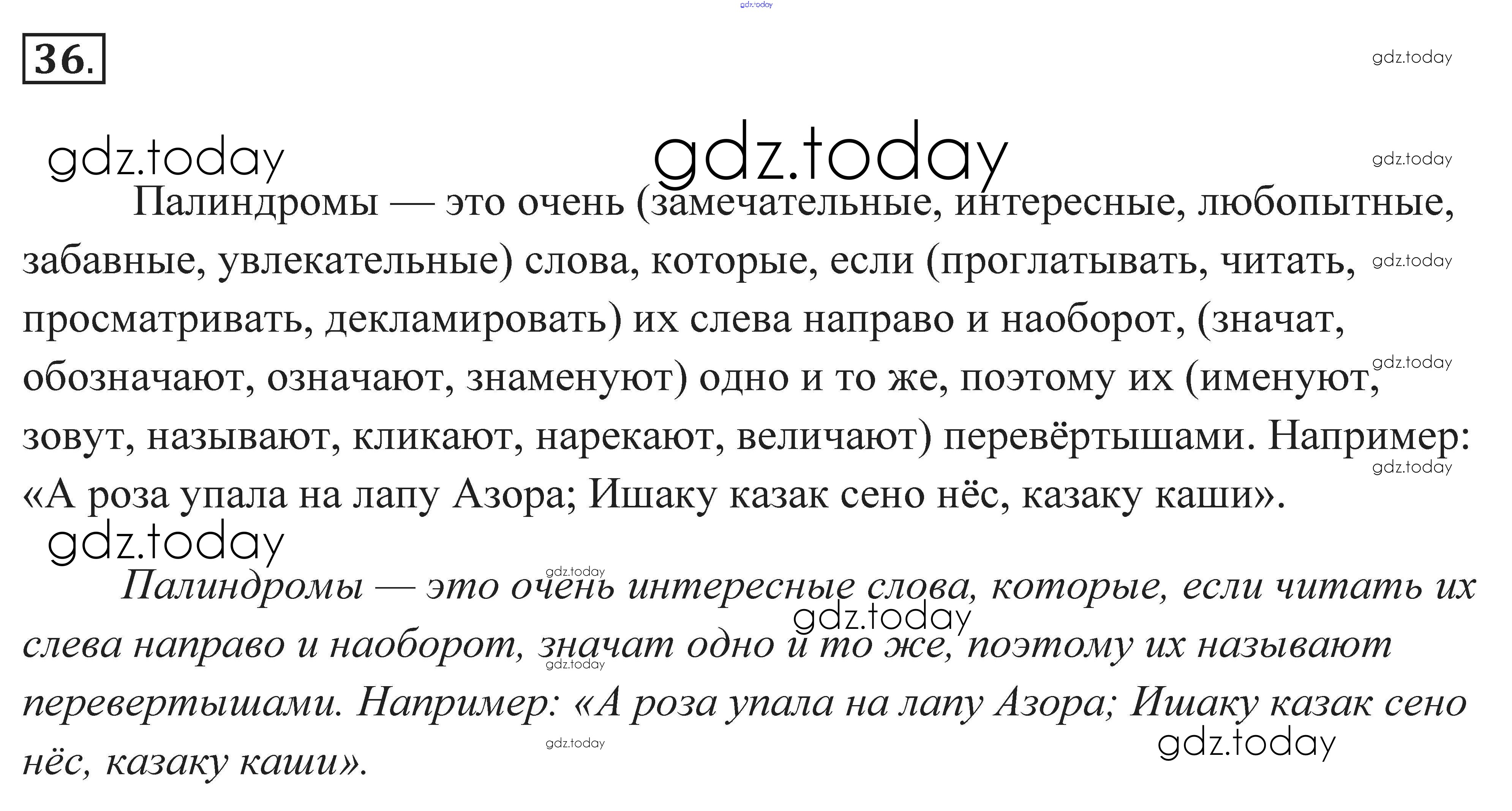На страницах сайта gdz.today вы найдете учебный и вспомогательный материал, направленный на улучшения знаний школьной программы. ГДЗ - онлайн мир знаний Решение к заданиям 36 Практике по Русскому языку для 7 класса Пименова, Еремеева Дрофа 2016