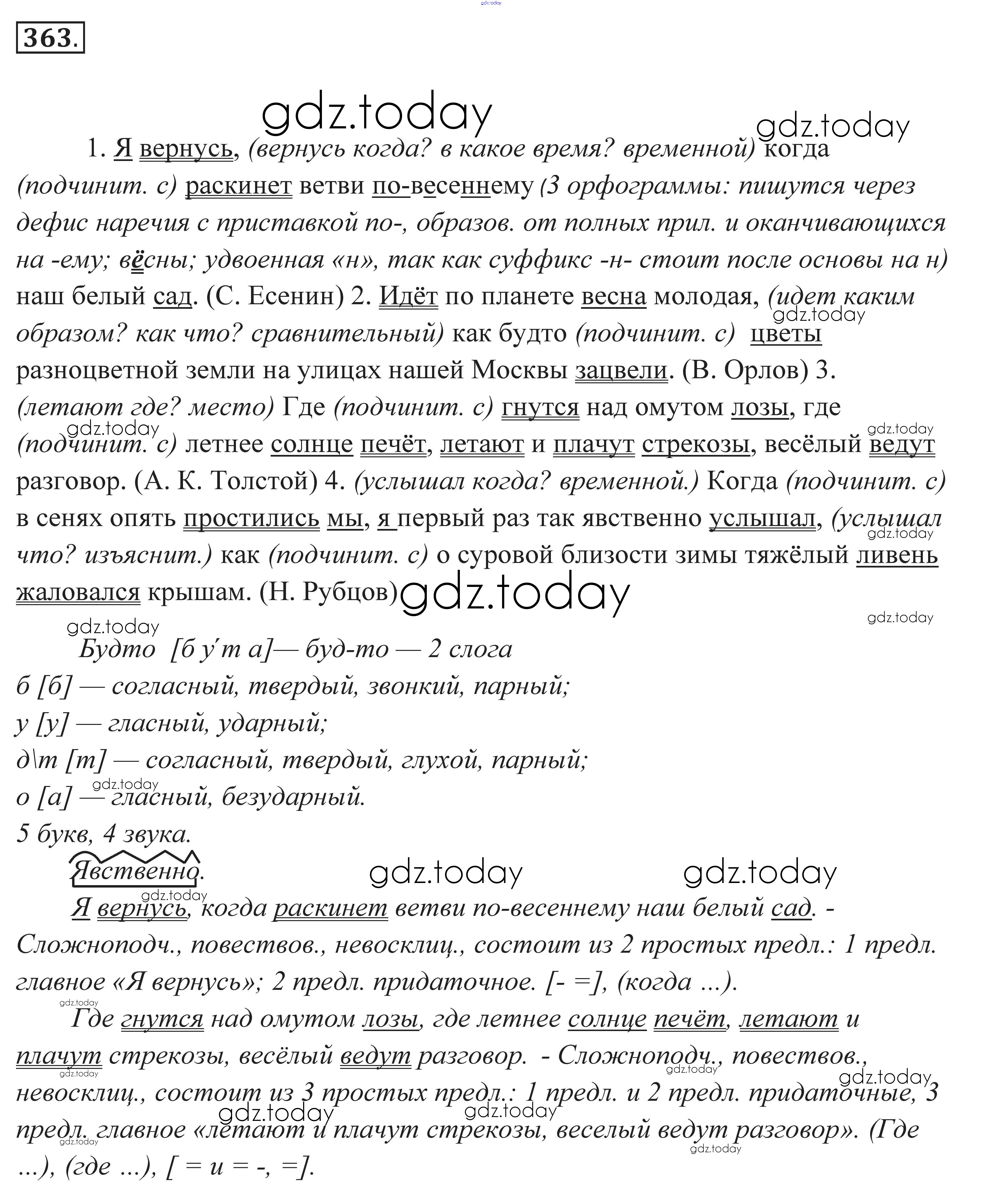 На страницах сайта gdz.today вы найдете учебный и вспомогательный материал, направленный на улучшения знаний школьной программы. ГДЗ - онлайн мир знаний Решение к заданиям 363 Практике по Русскому языку для 7 класса Пименова, Еремеева Дрофа 2016