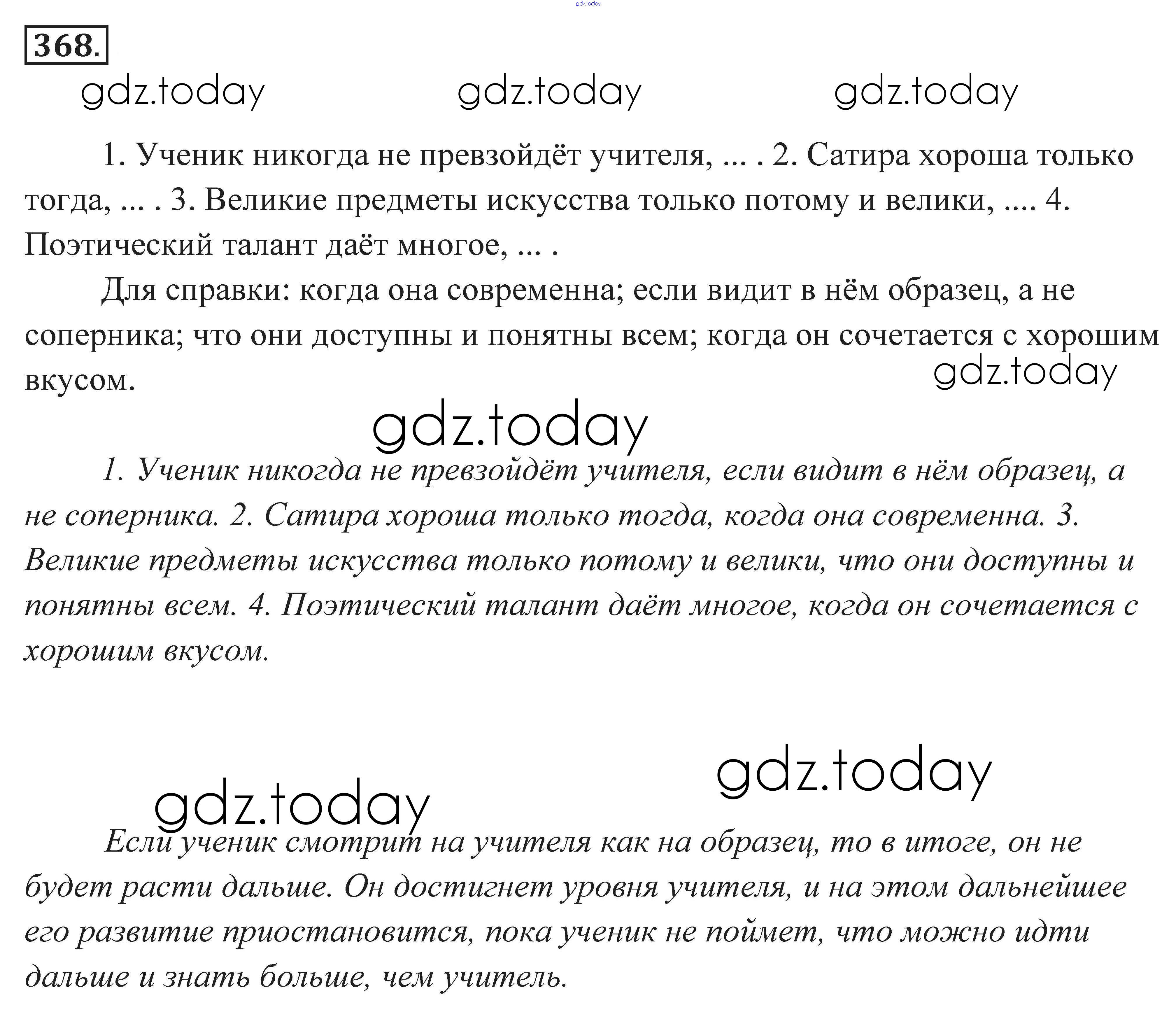 На страницах сайта gdz.today вы найдете учебный и вспомогательный материал, направленный на улучшения знаний школьной программы. ГДЗ - онлайн мир знаний Решение к заданиям 368 Практике по Русскому языку для 7 класса Пименова, Еремеева Дрофа 2016