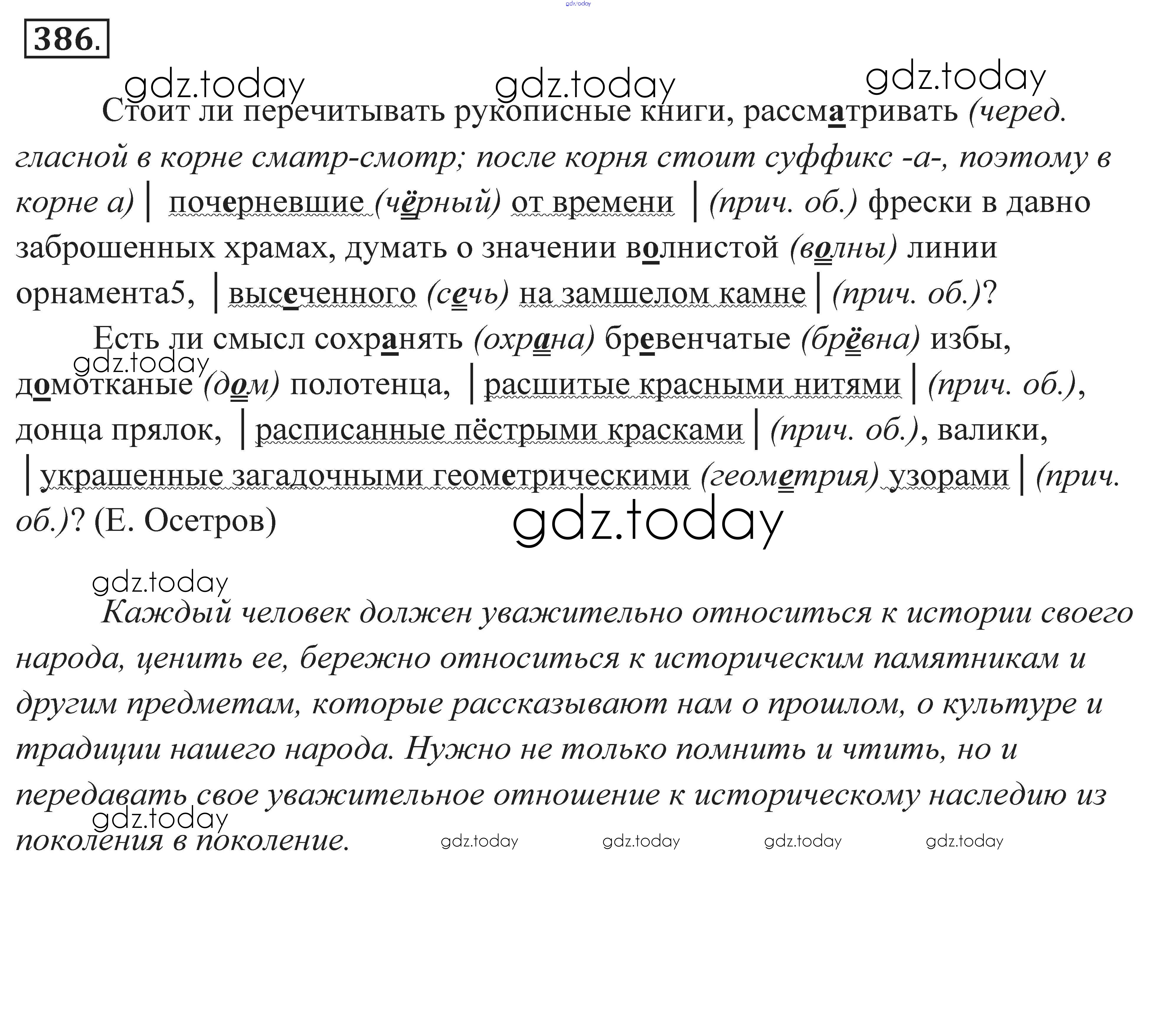 На страницах сайта gdz.today вы найдете учебный и вспомогательный материал, направленный на улучшения знаний школьной программы. ГДЗ - онлайн мир знаний Решение к заданиям 386 Практике по Русскому языку для 7 класса Пименова, Еремеева Дрофа 2016
