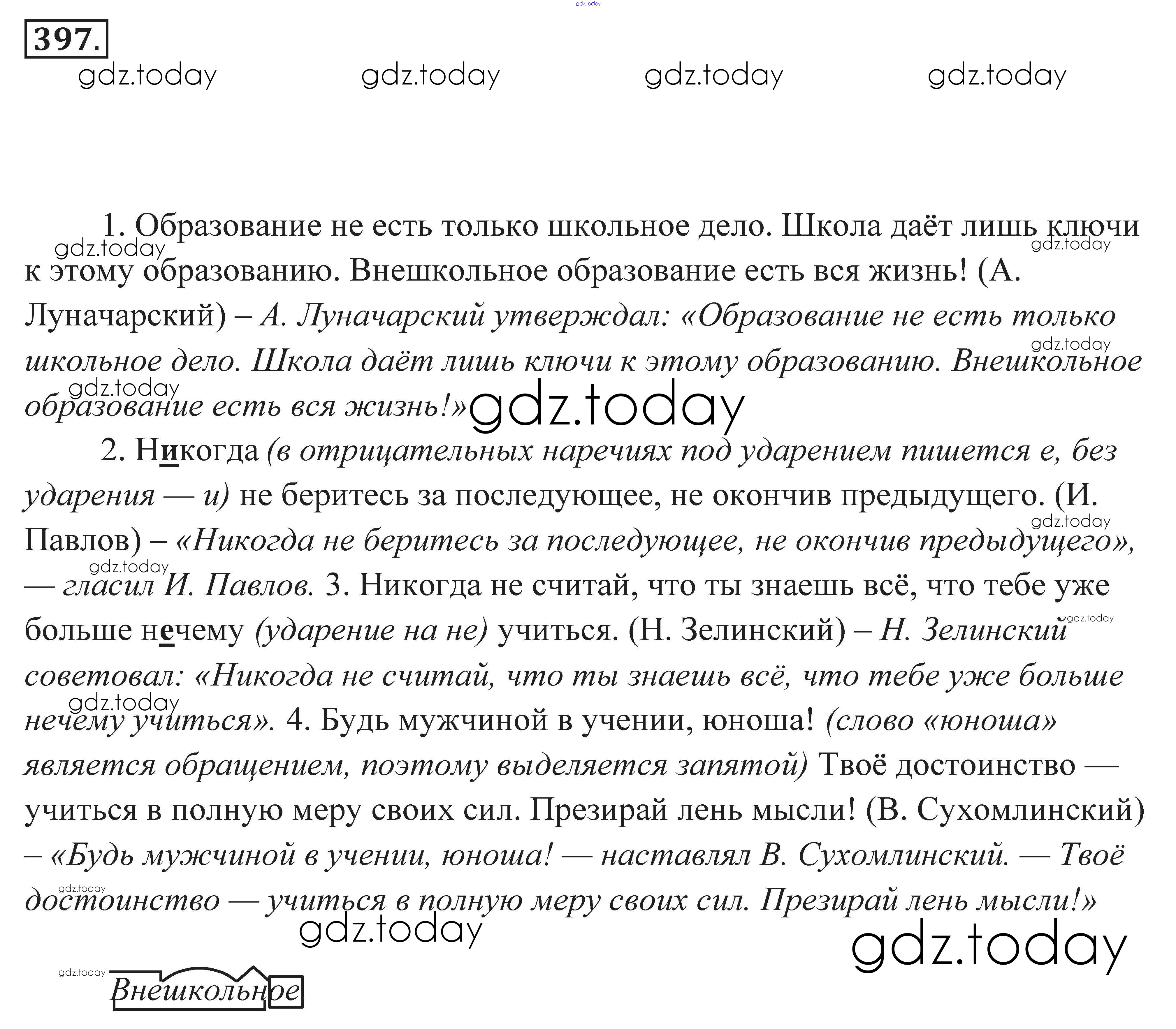 На страницах сайта gdz.today вы найдете учебный и вспомогательный материал, направленный на улучшения знаний школьной программы. ГДЗ - онлайн мир знаний Решение к заданиям 397 Практике по Русскому языку для 7 класса Пименова, Еремеева Дрофа 2016