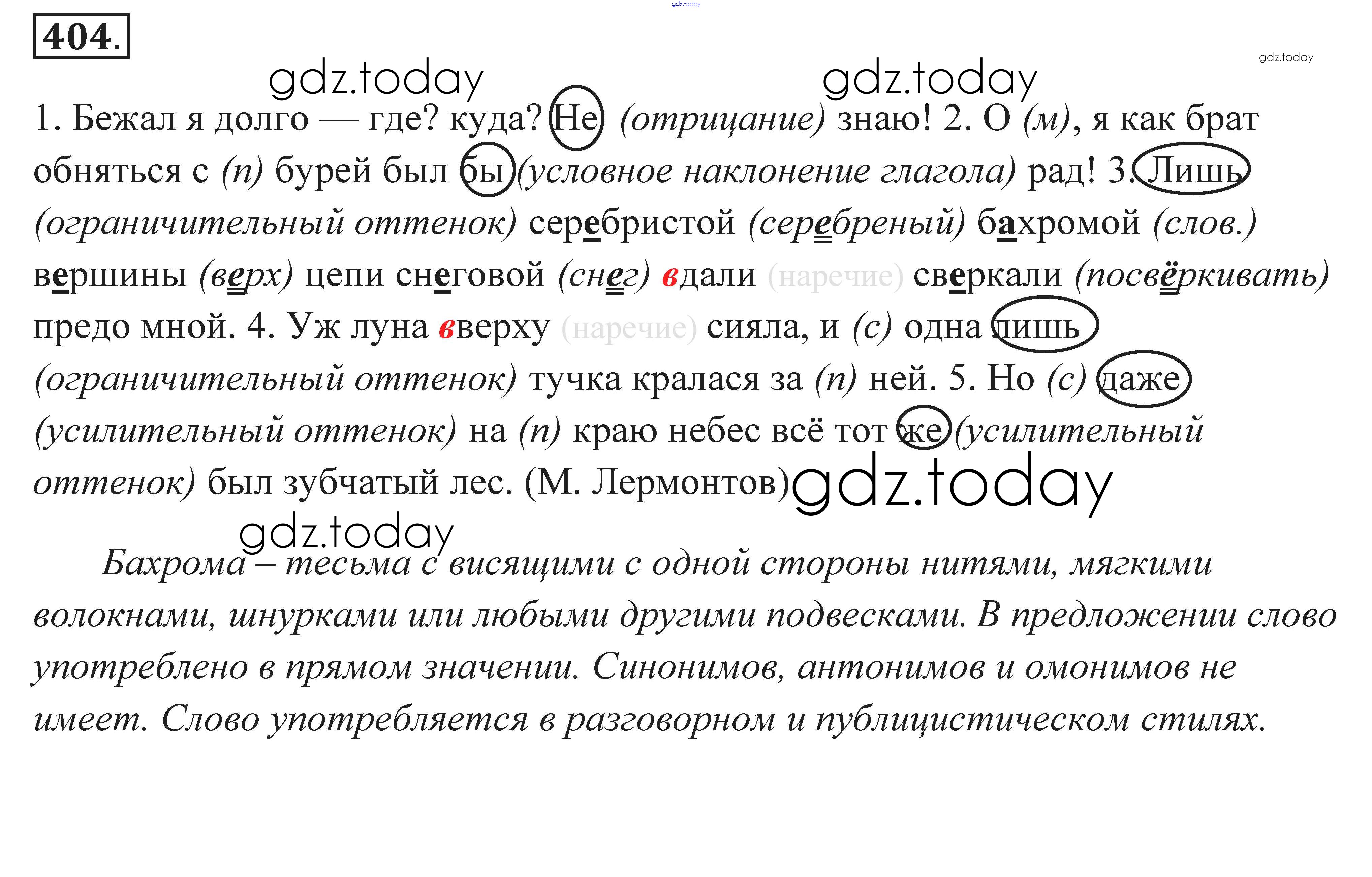 На страницах сайта gdz.today вы найдете учебный и вспомогательный материал, направленный на улучшения знаний школьной программы. ГДЗ - онлайн мир знаний Решение к заданиям 404 Практике по Русскому языку для 7 класса Пименова, Еремеева Дрофа 2016
