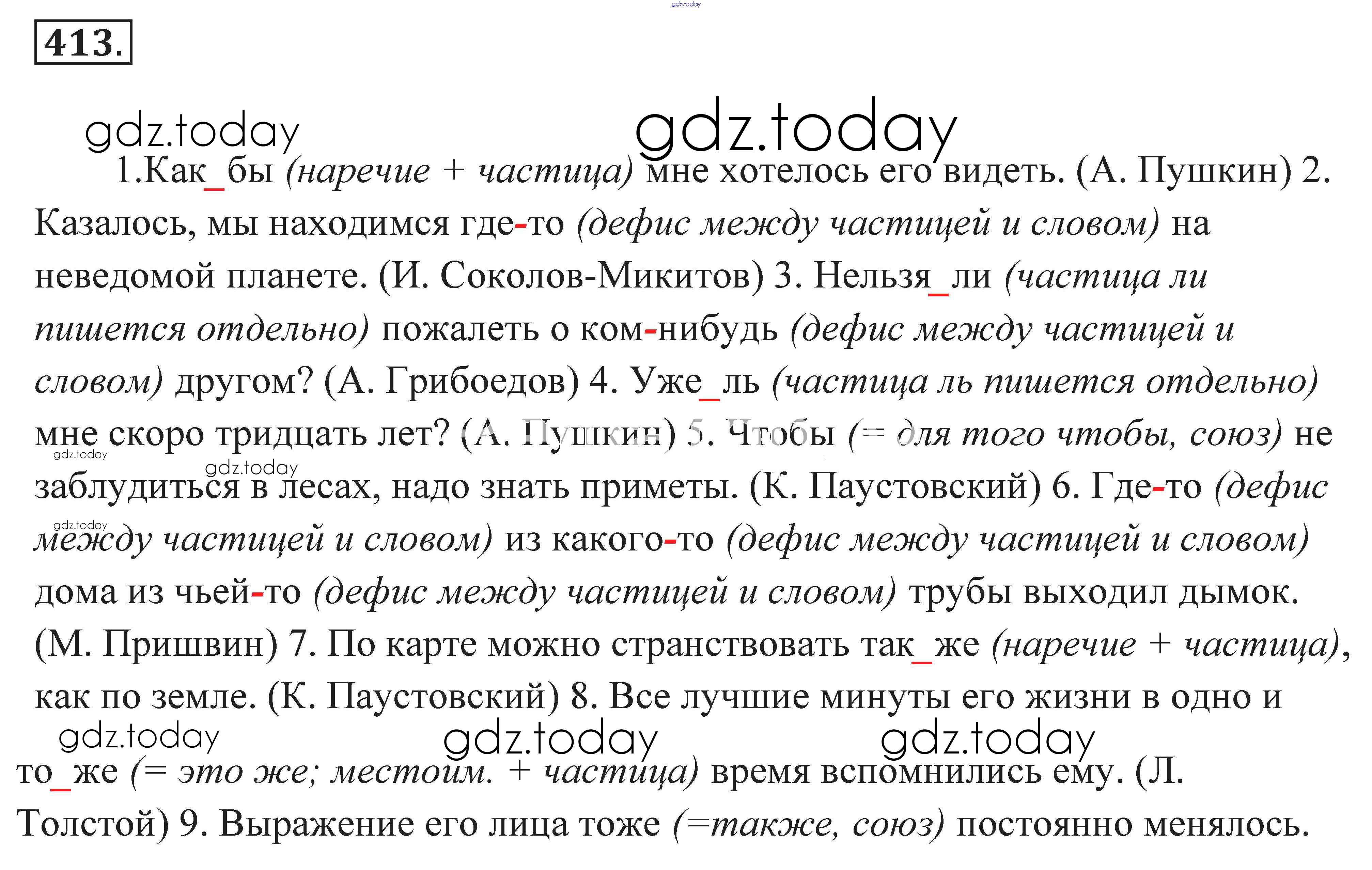 На страницах сайта gdz.today вы найдете учебный и вспомогательный материал, направленный на улучшения знаний школьной программы. ГДЗ - онлайн мир знаний Решение к заданиям 413 Практике по Русскому языку для 7 класса Пименова, Еремеева Дрофа 2016