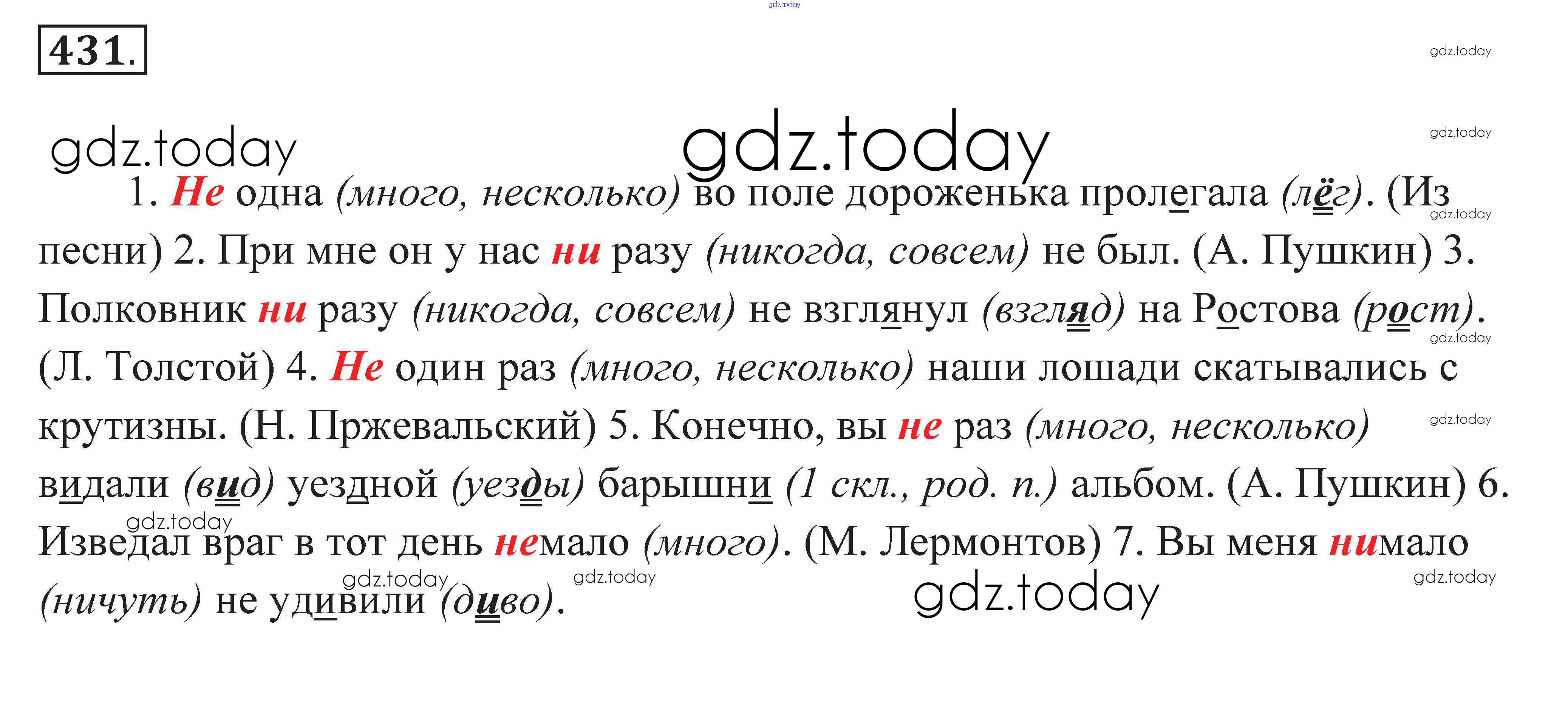 На страницах сайта gdz.today вы найдете учебный и вспомогательный материал, направленный на улучшения знаний школьной программы. ГДЗ - онлайн мир знаний Решение к заданиям 431 Практике по Русскому языку для 7 класса Пименова, Еремеева Дрофа 2016