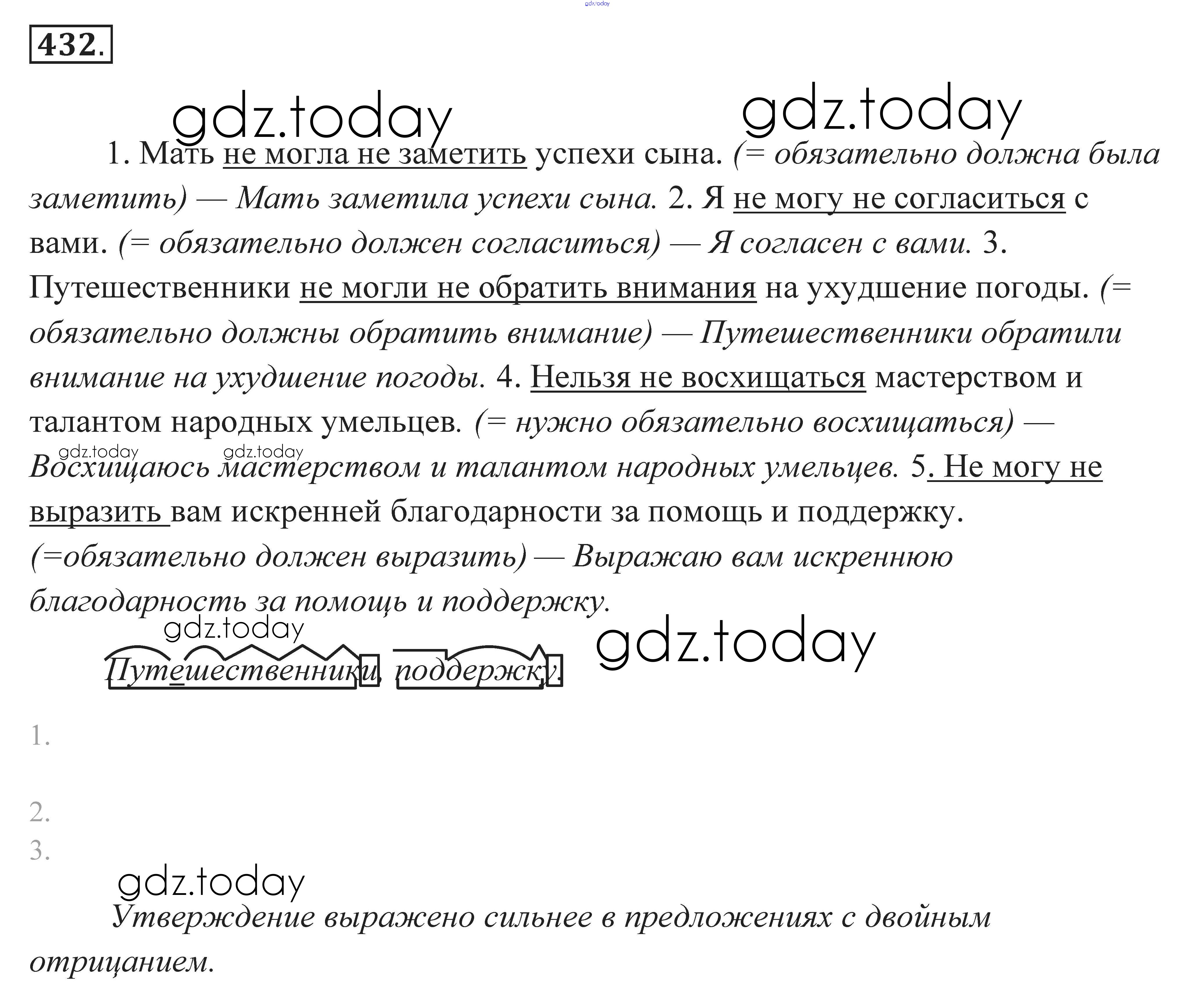 Ответы к Решение к заданиям 432 Практике по Русскому языку для 7 класса Пименова, Еремеева Дрофа 2016