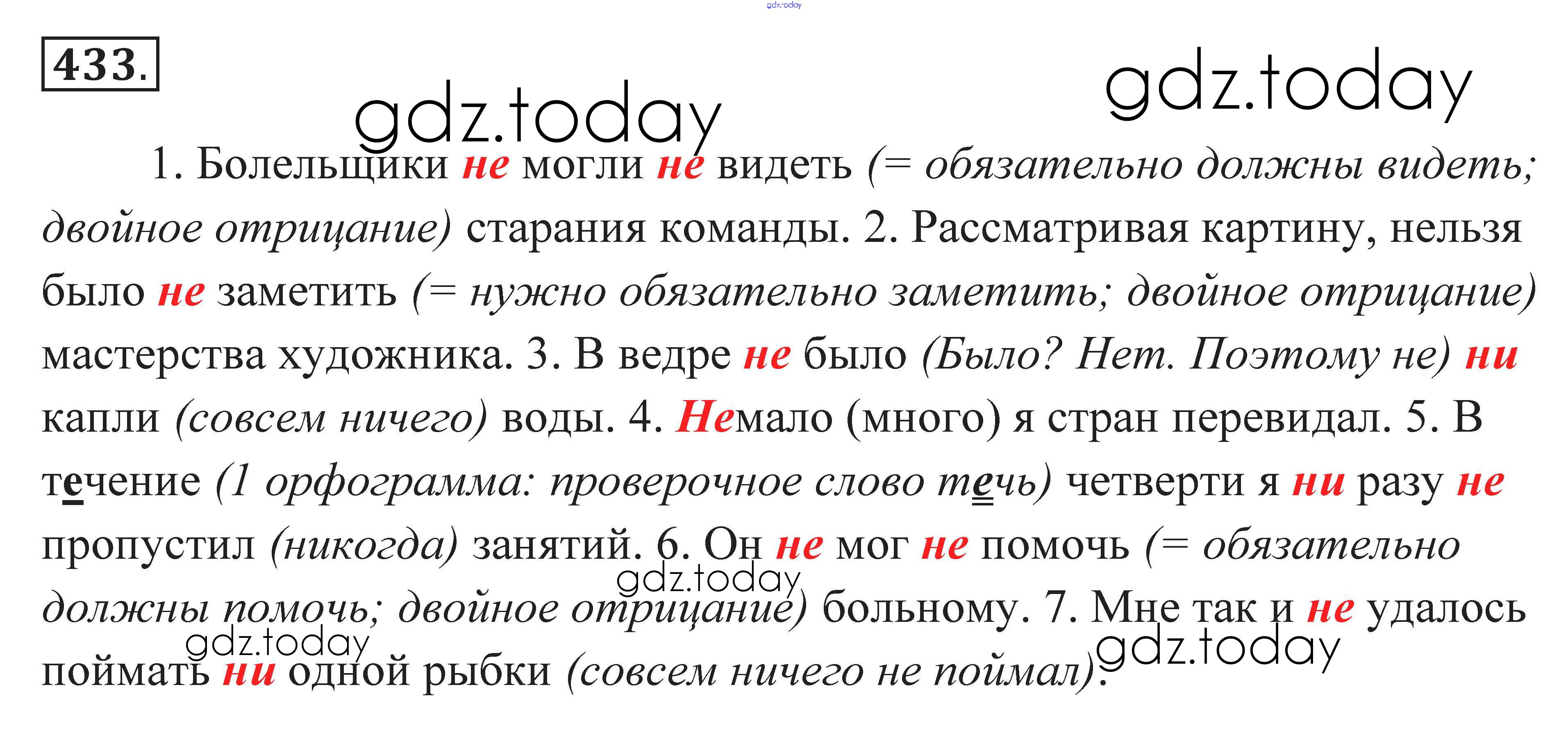 На страницах сайта gdz.today вы найдете учебный и вспомогательный материал, направленный на улучшения знаний школьной программы. ГДЗ - онлайн мир знаний Решение к заданиям 433 Практике по Русскому языку для 7 класса Пименова, Еремеева Дрофа 2016